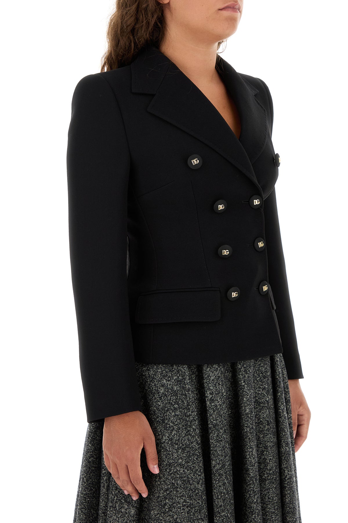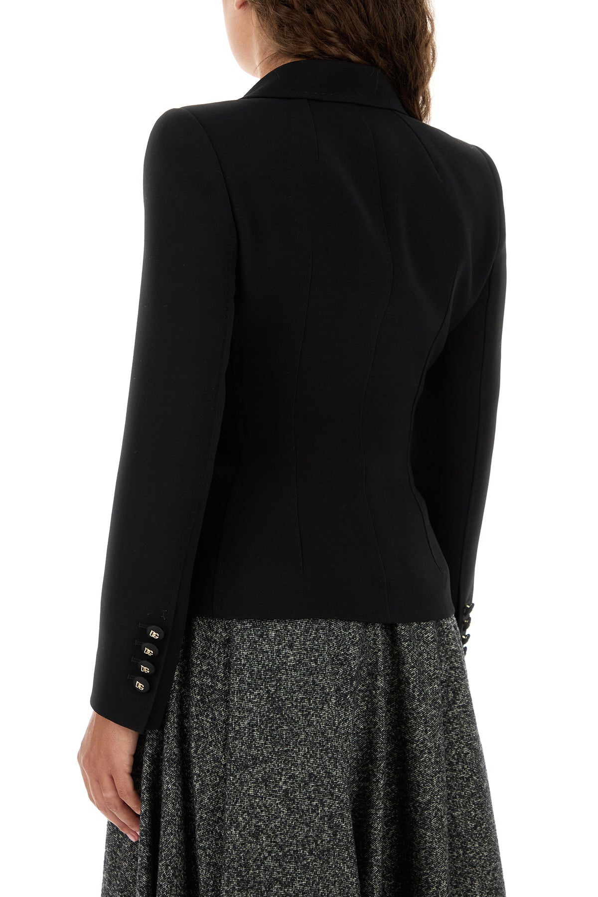 Blazer realized in pure virgin wool characterized by padded shoulders.