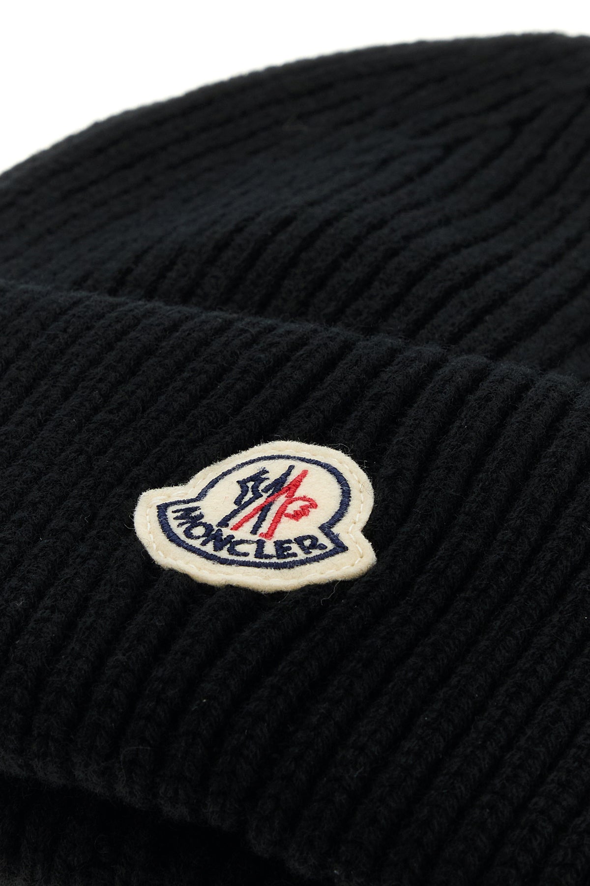 Beanie hat realized in wool and cashmere enriched by logoed patch at the front.