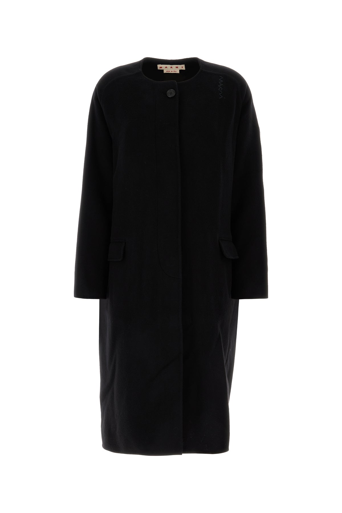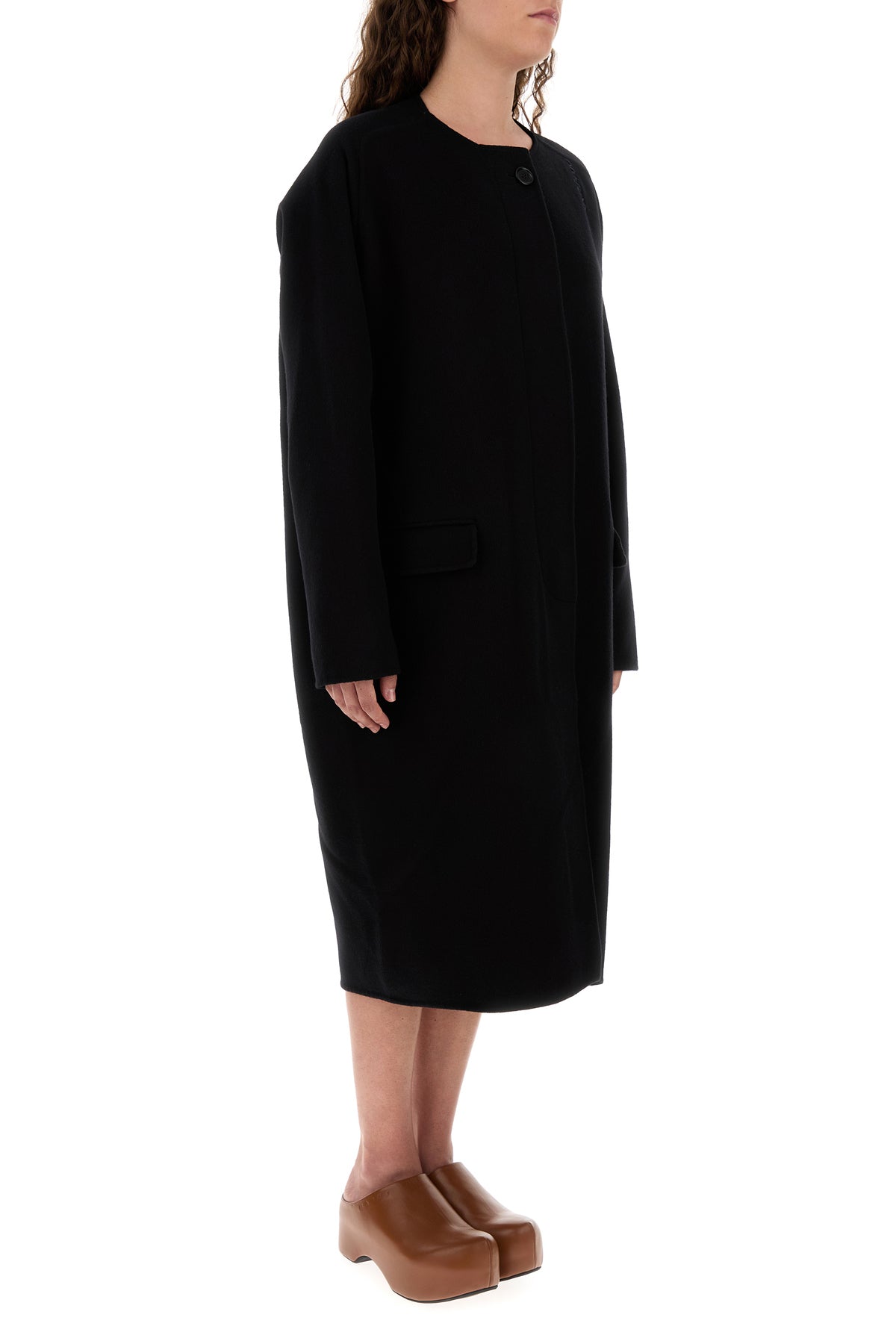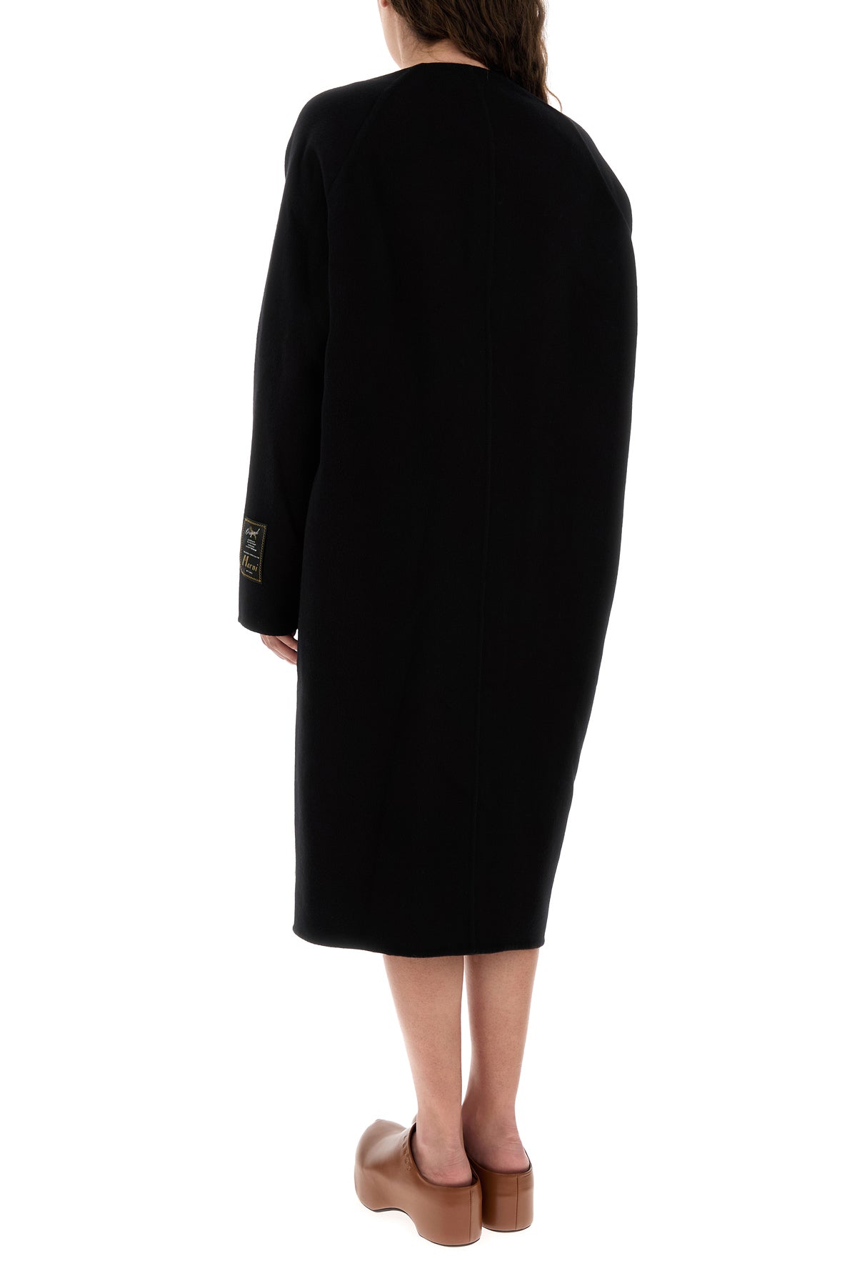 Coat realized in virgin wool and cashmere characterized by tonal embroidered logo at the top.