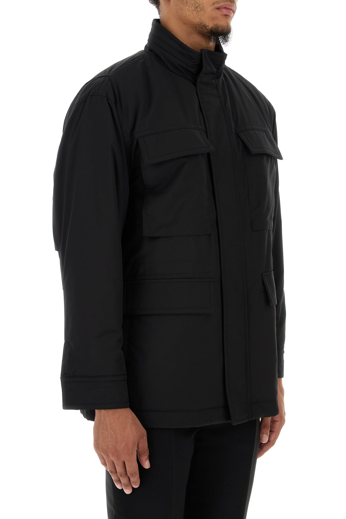 Black wool blend padded jacket