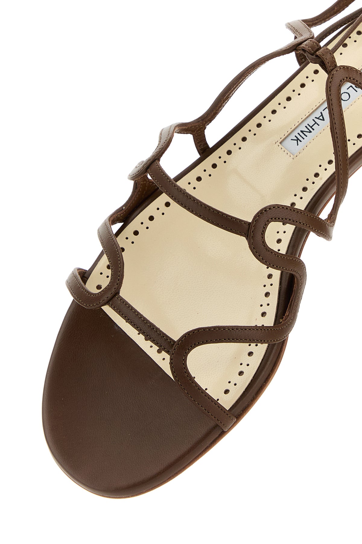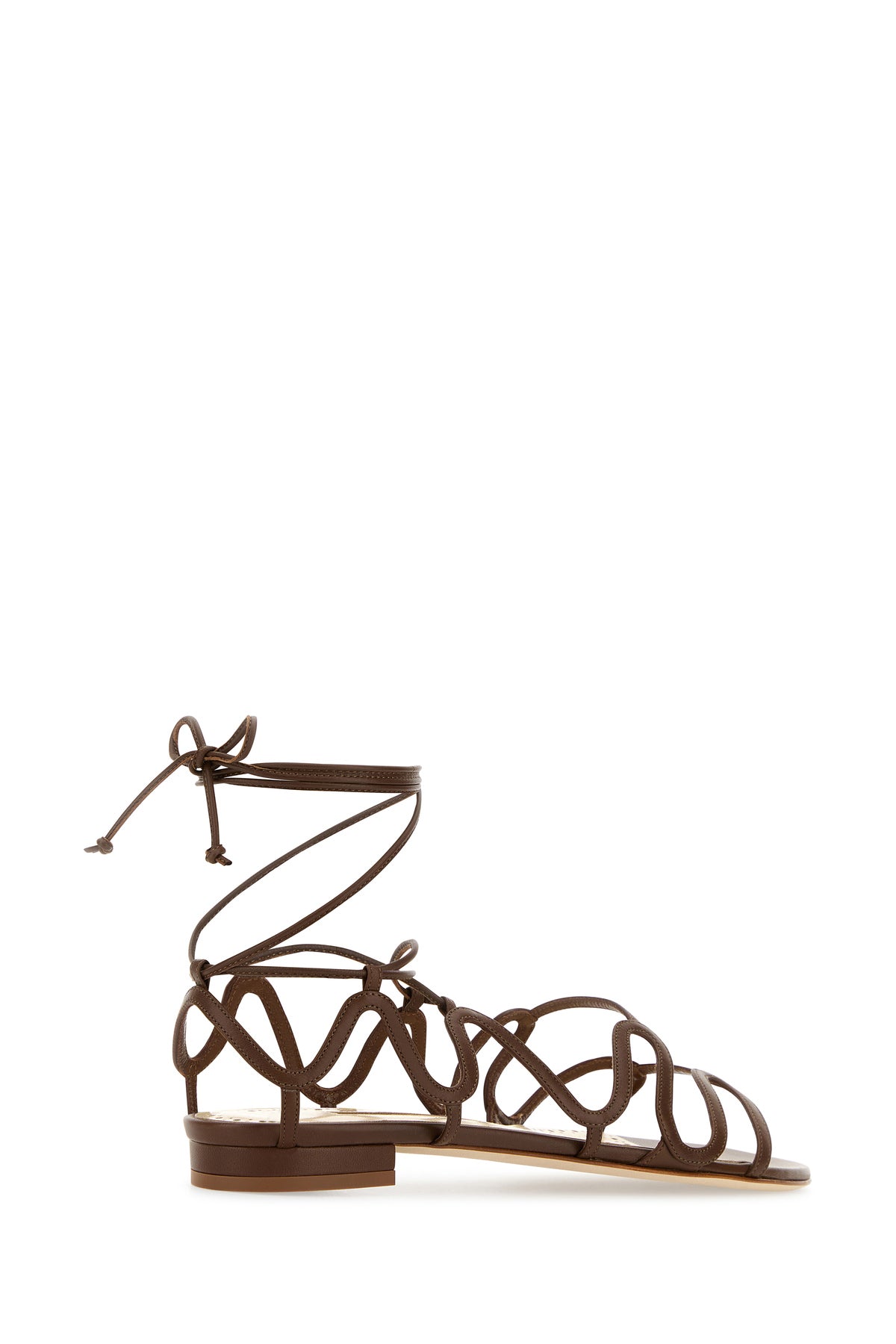 Sandals realized in leather characterized by laces to tie closure on the ankle.