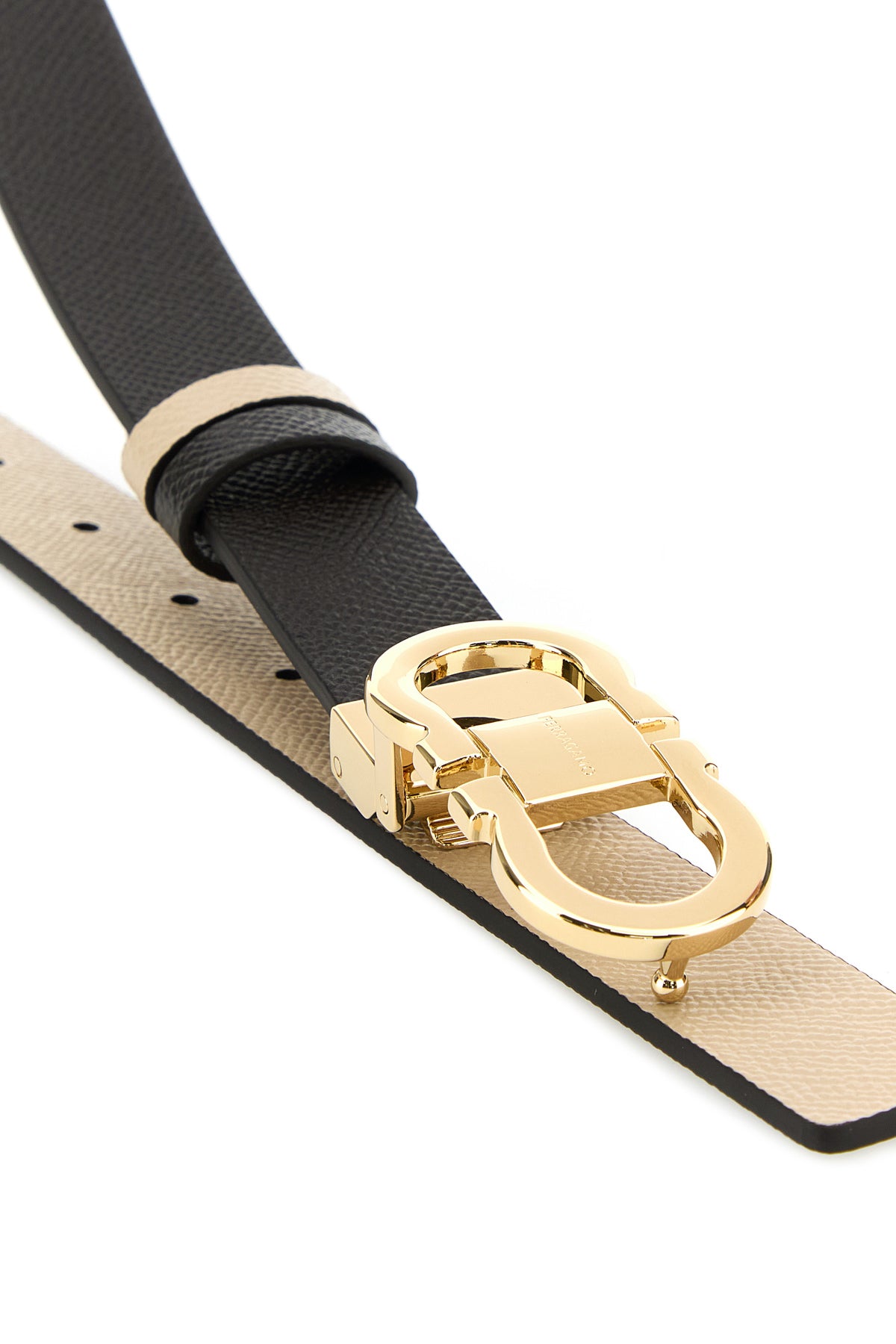 Reversible belt realized in pebble leather enriched by metal Gancini detail.