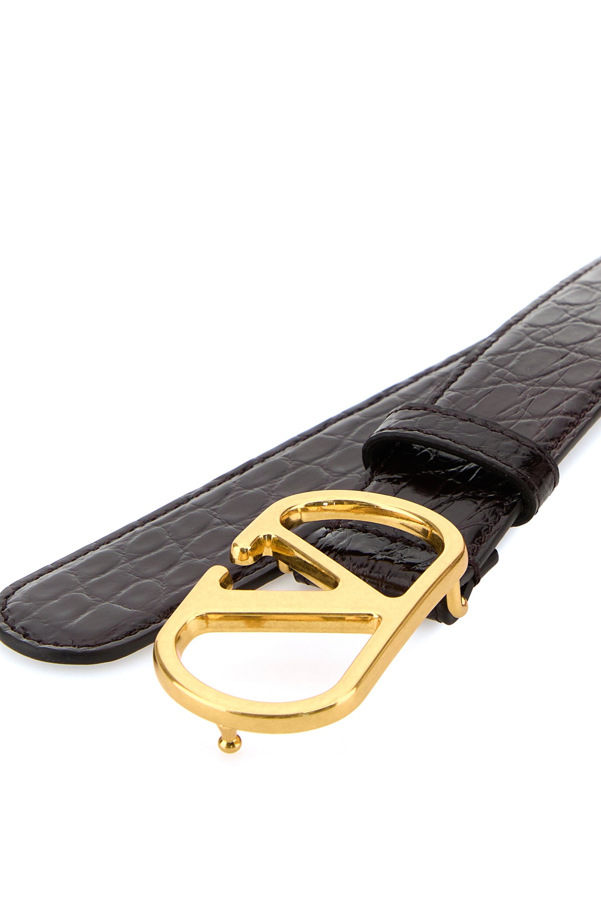 Belt realized in alligator leather enriched by VLogo Signature metal buckle.