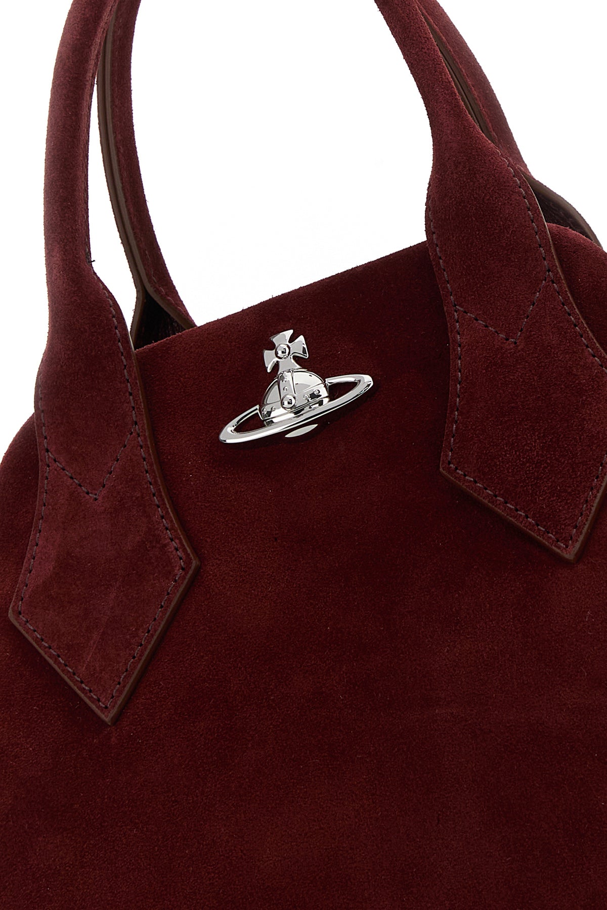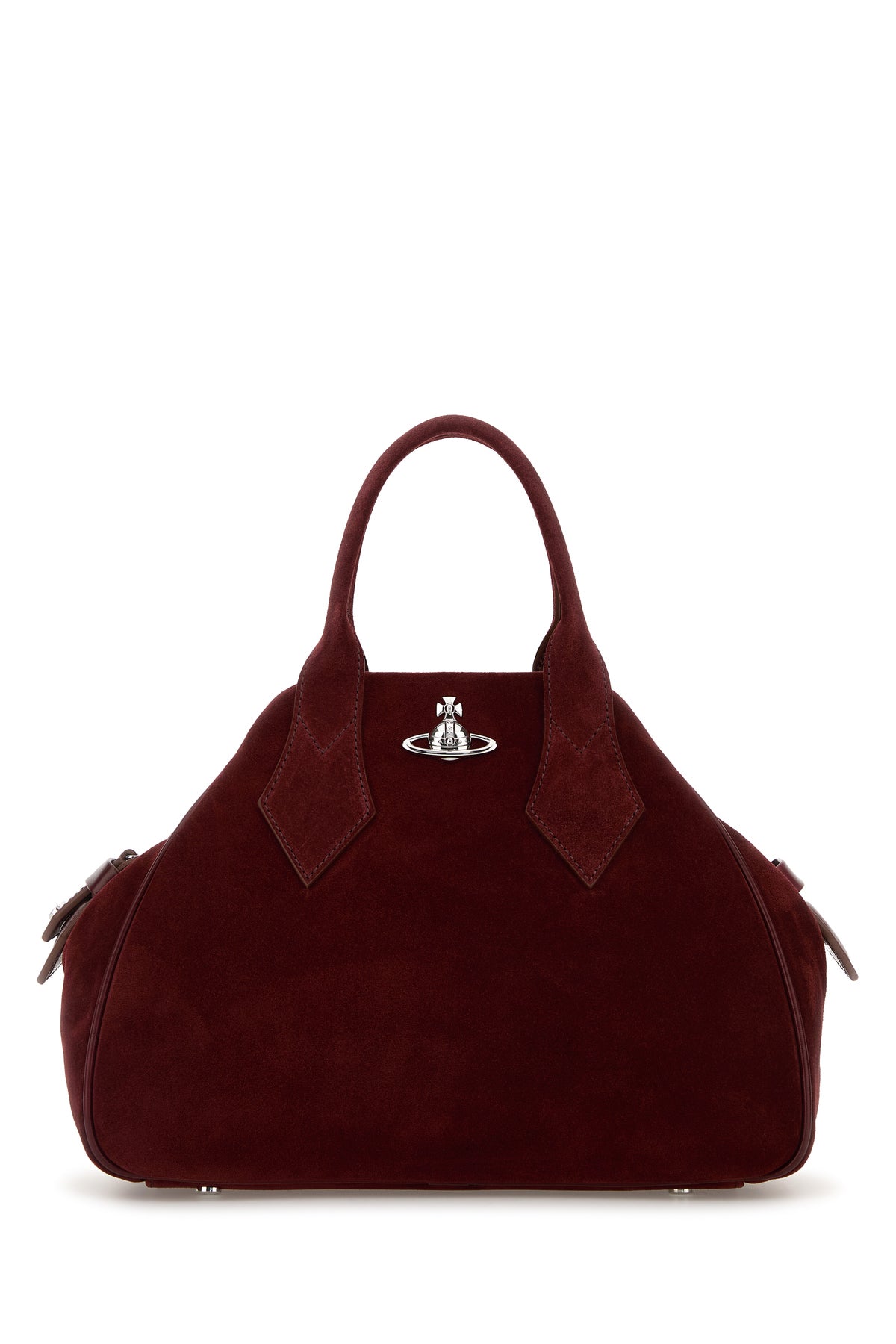 Handbag realized in calf suede enriched by metal Orb detail at the front.