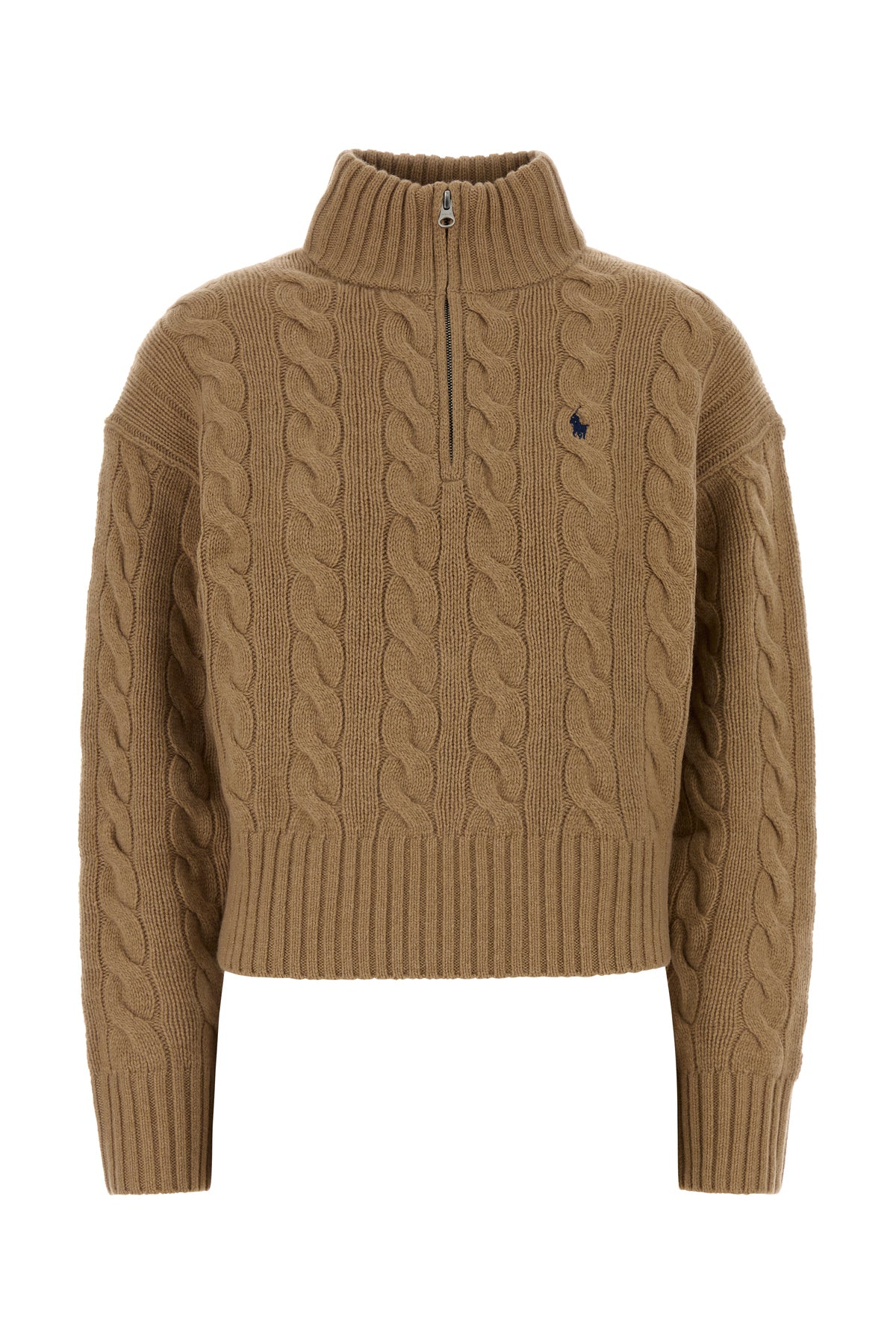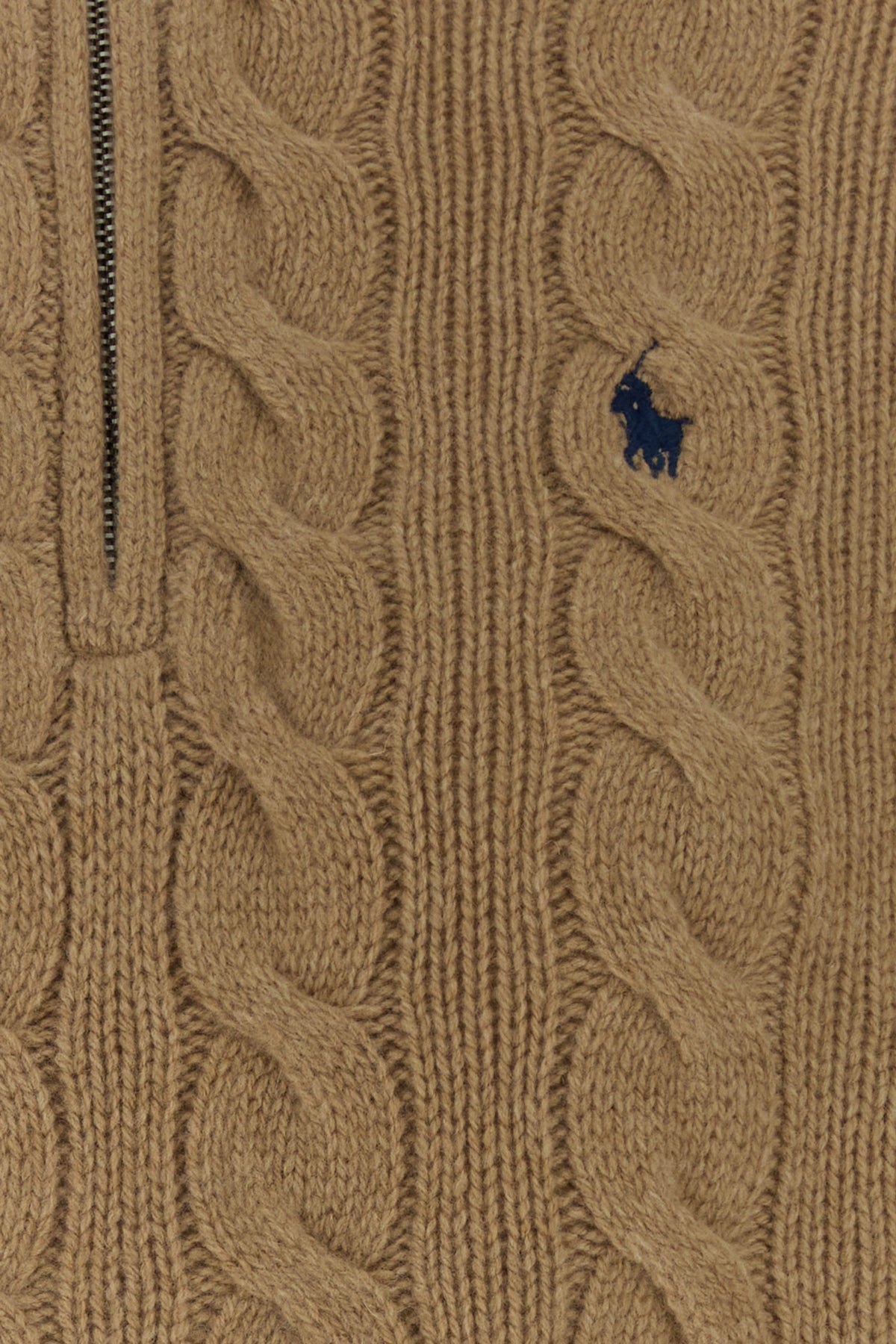 Knitted sweater realized in wool and cashmere characterized by iconic embroidered logo on the chest.