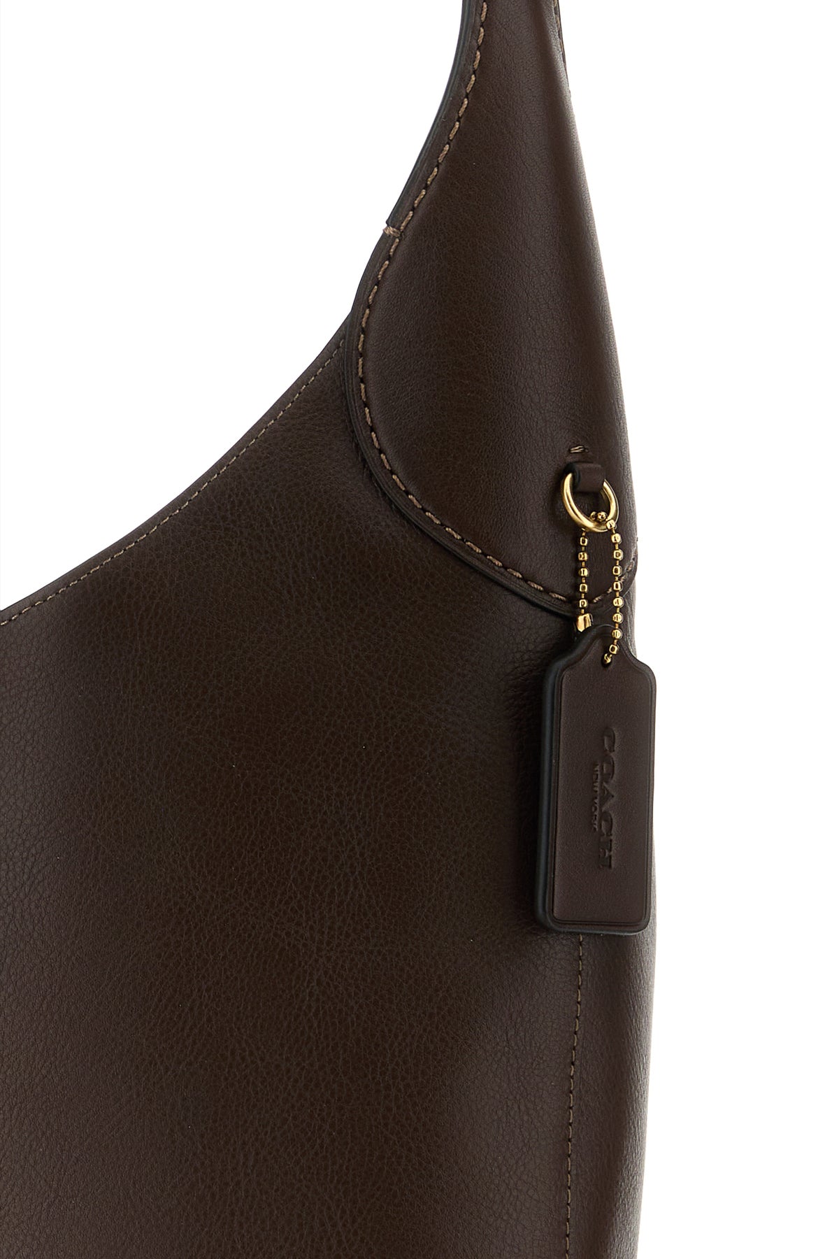 Shoulder bag realized in slightly pebble leather characterized by laminated printed logo at the front enriched by detachable logoed accessory on the side.