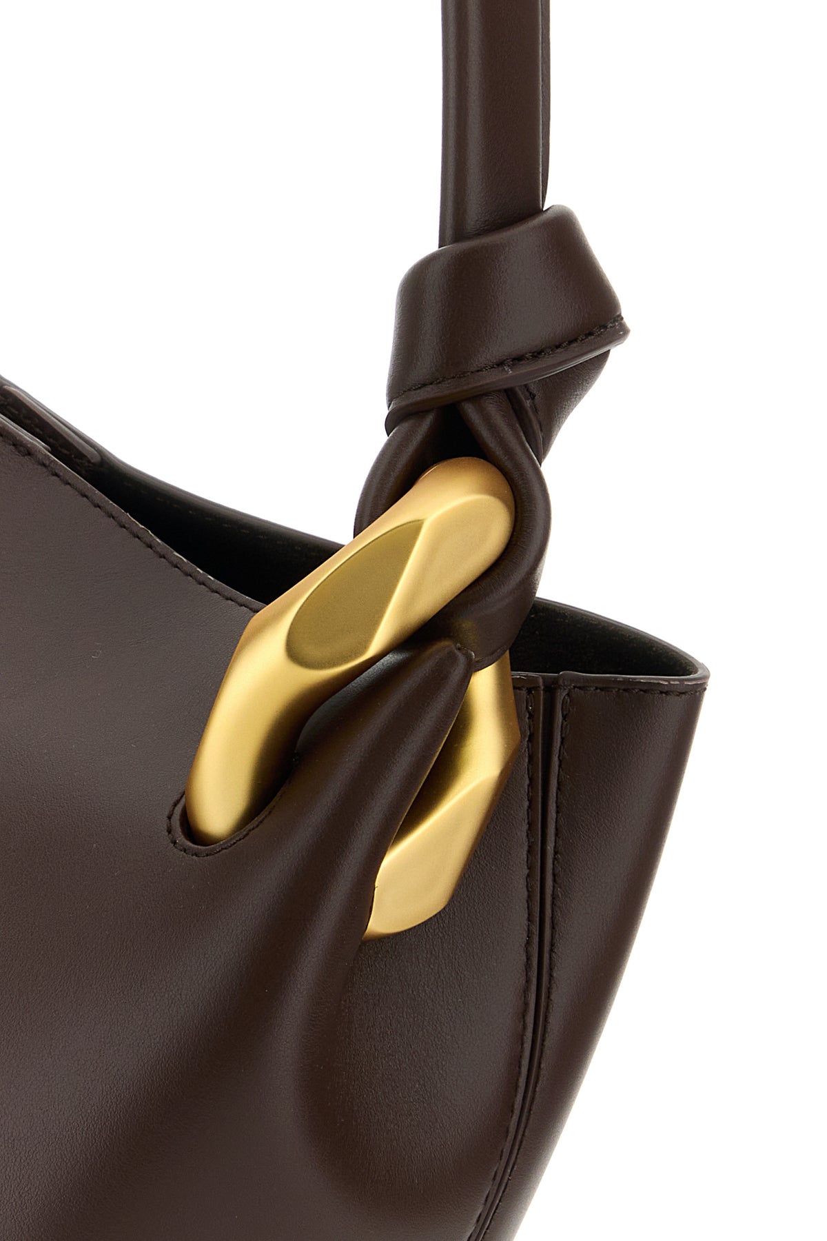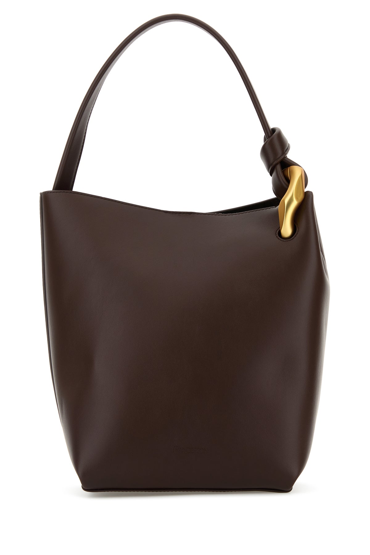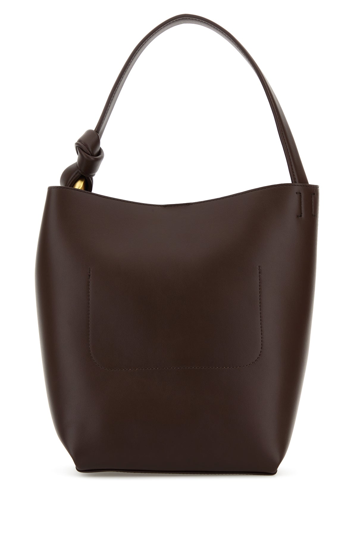Bucket bag realized in leather characterized by embossed logo at the front.