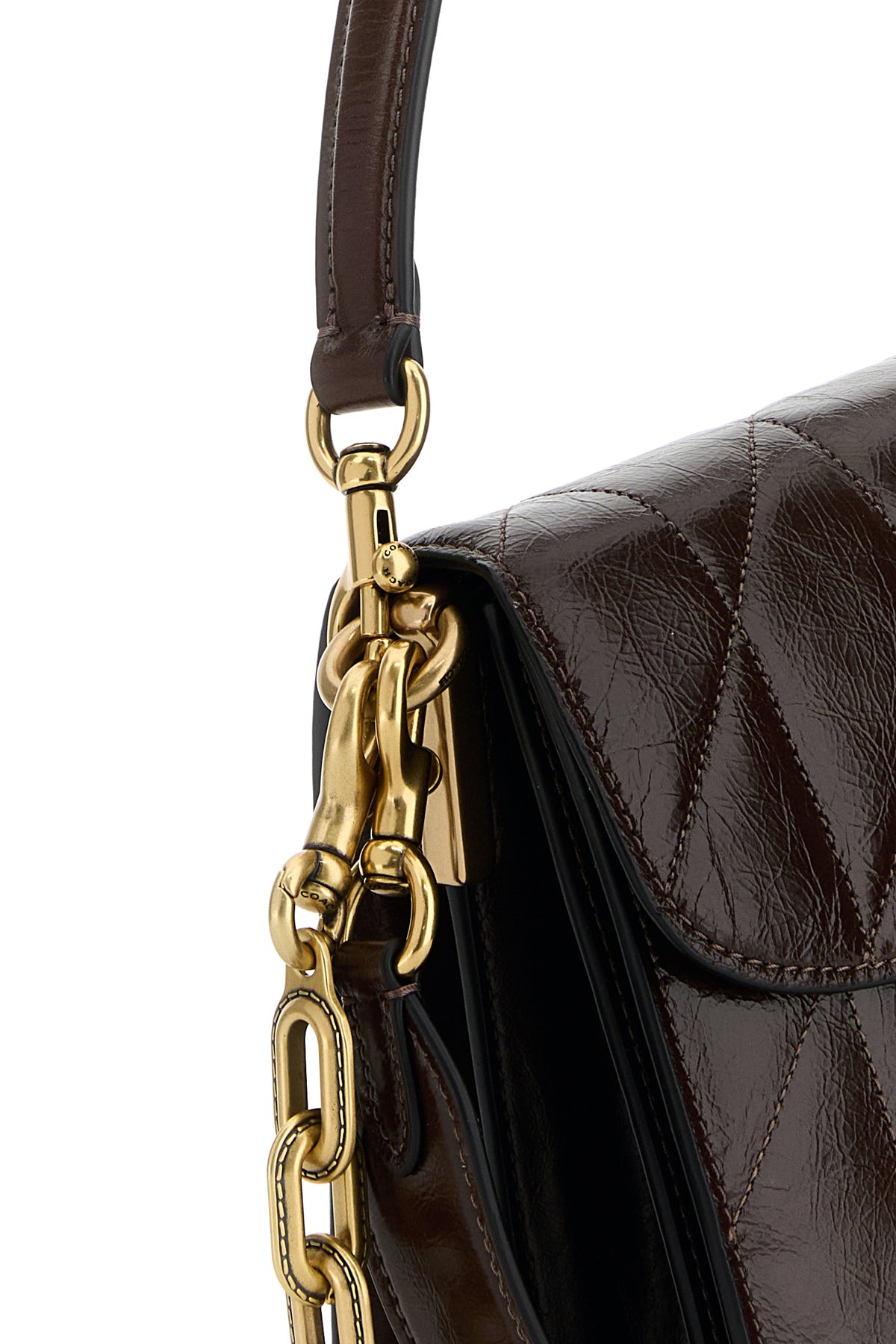 Shoulder bag realized in quilted leather enriched by logoed metal detail at the front.