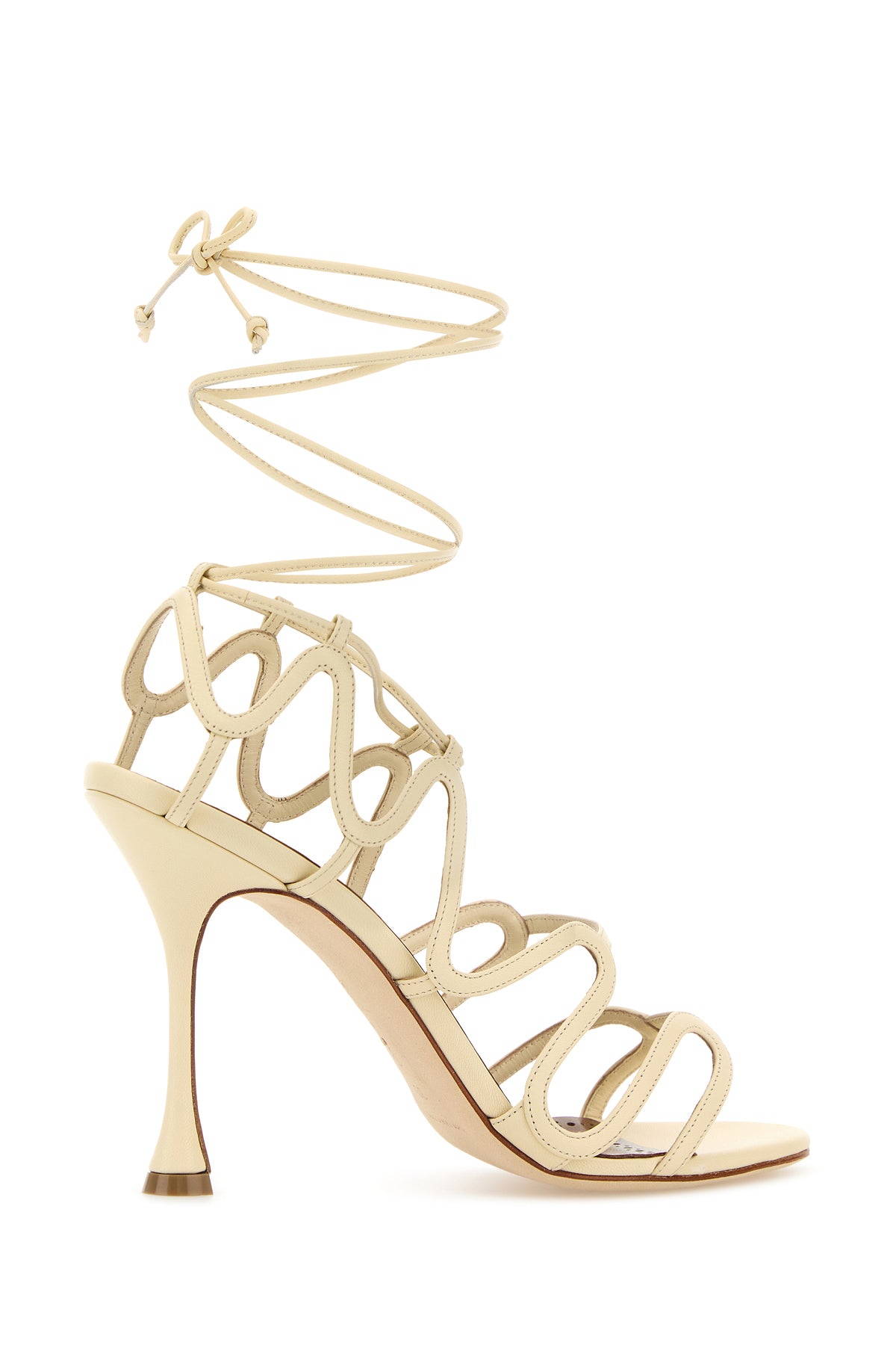 Sandals realized in leather characterized by laces to tie closure on the ankle.