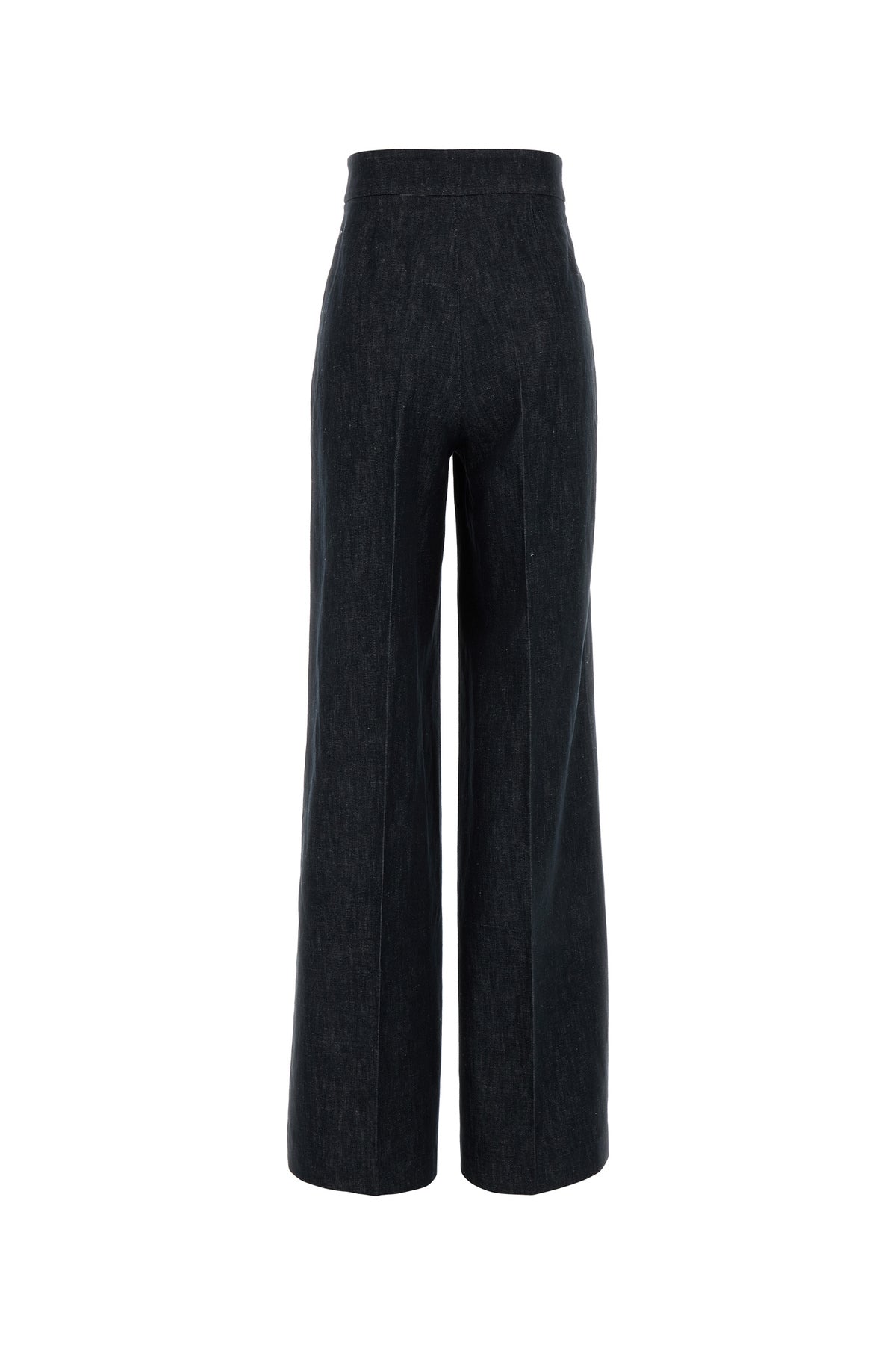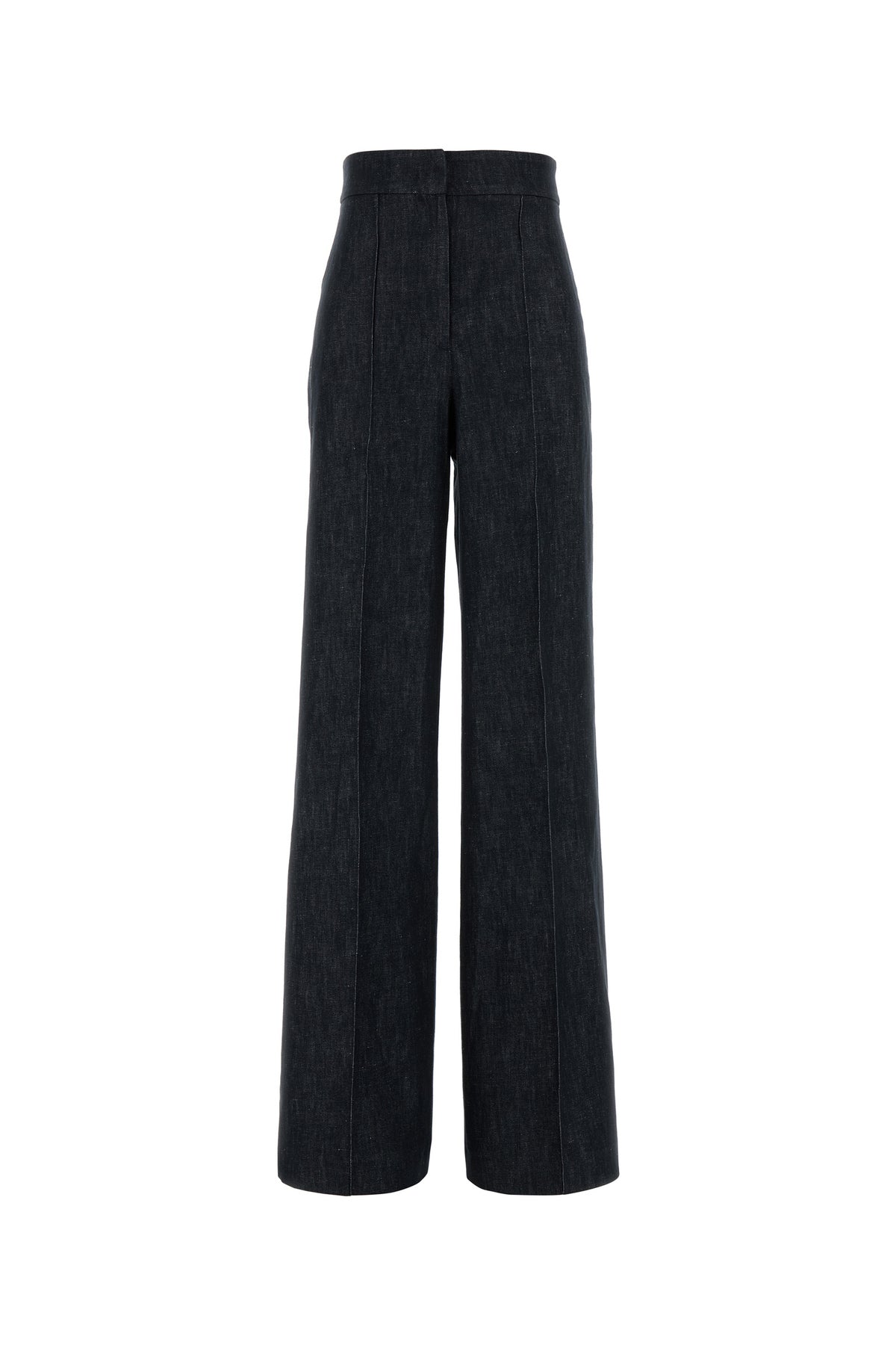 Palazzo jeans realized in cotton and linen denim characterized by central seamed pleats.