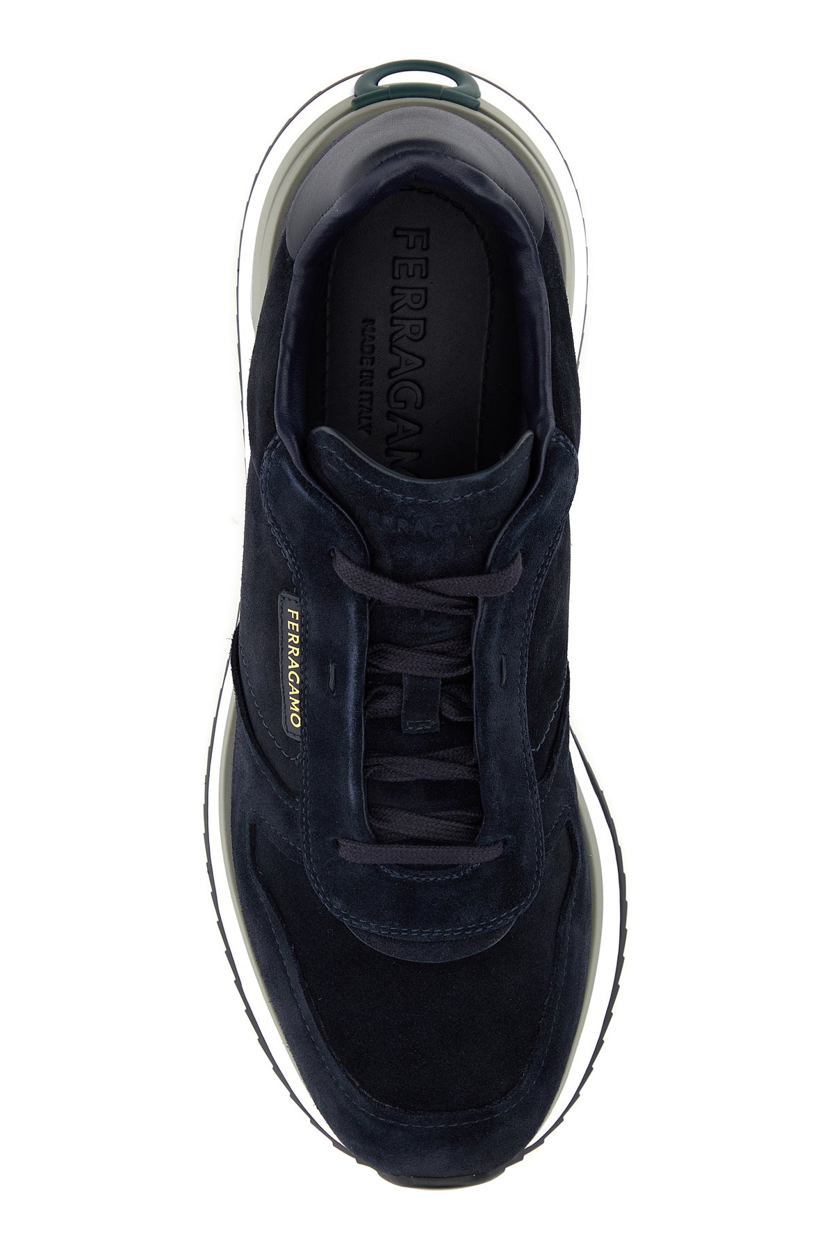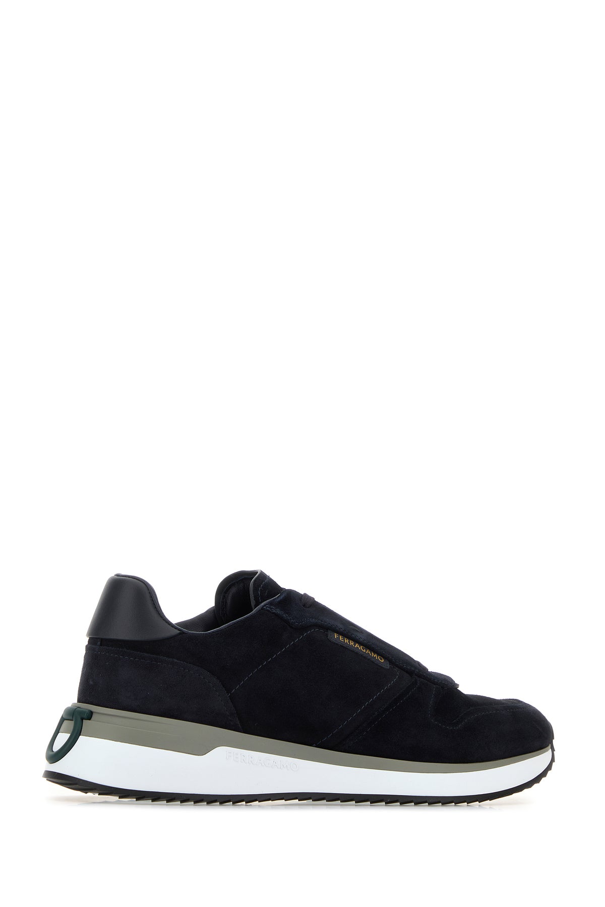 Sneakers realized in suede characterized by logo in relief on the sole enriched by logoed label on the side and Gancini patch at the back.