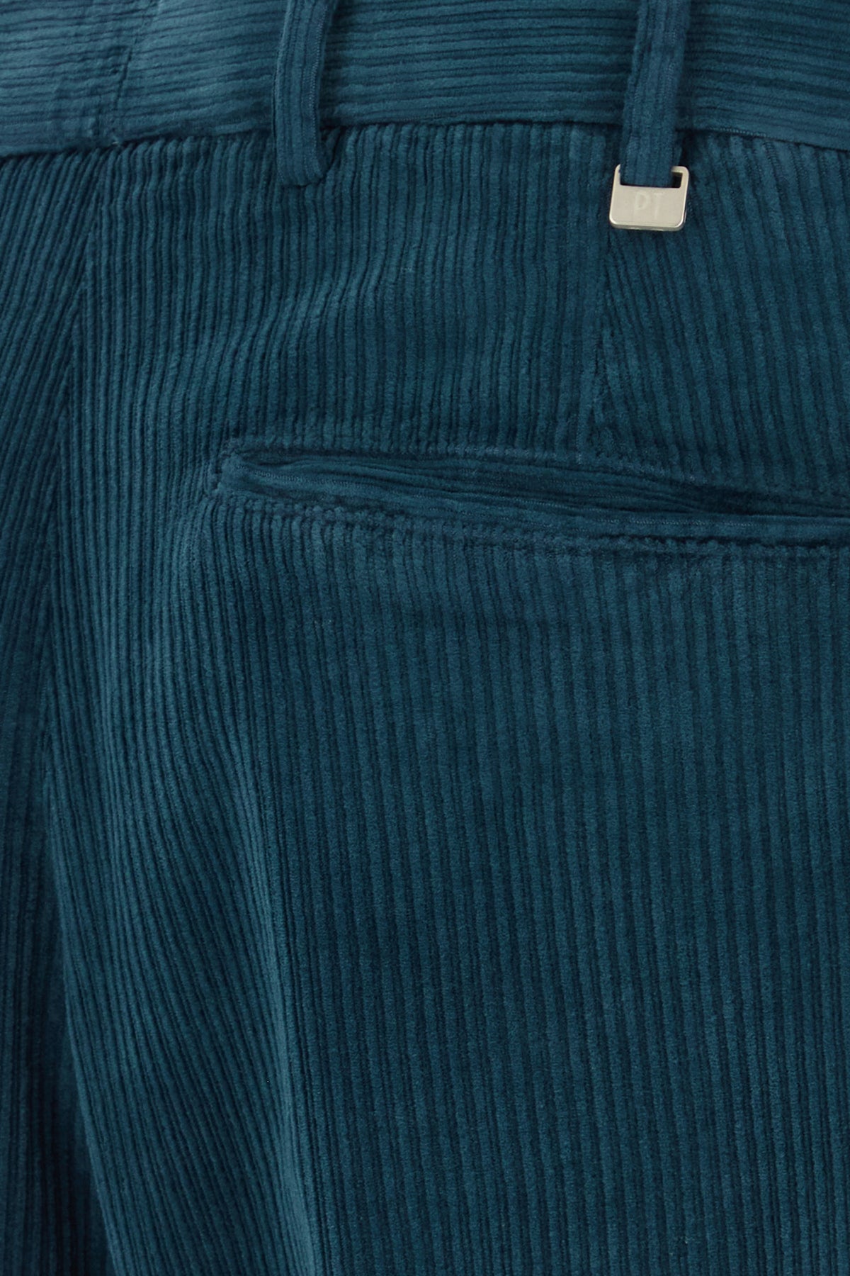 Pant realized in stretch cotton blend corduroy characterized by central ironed pleats.