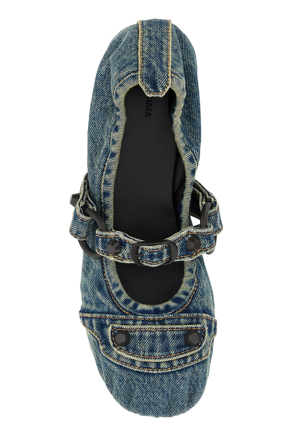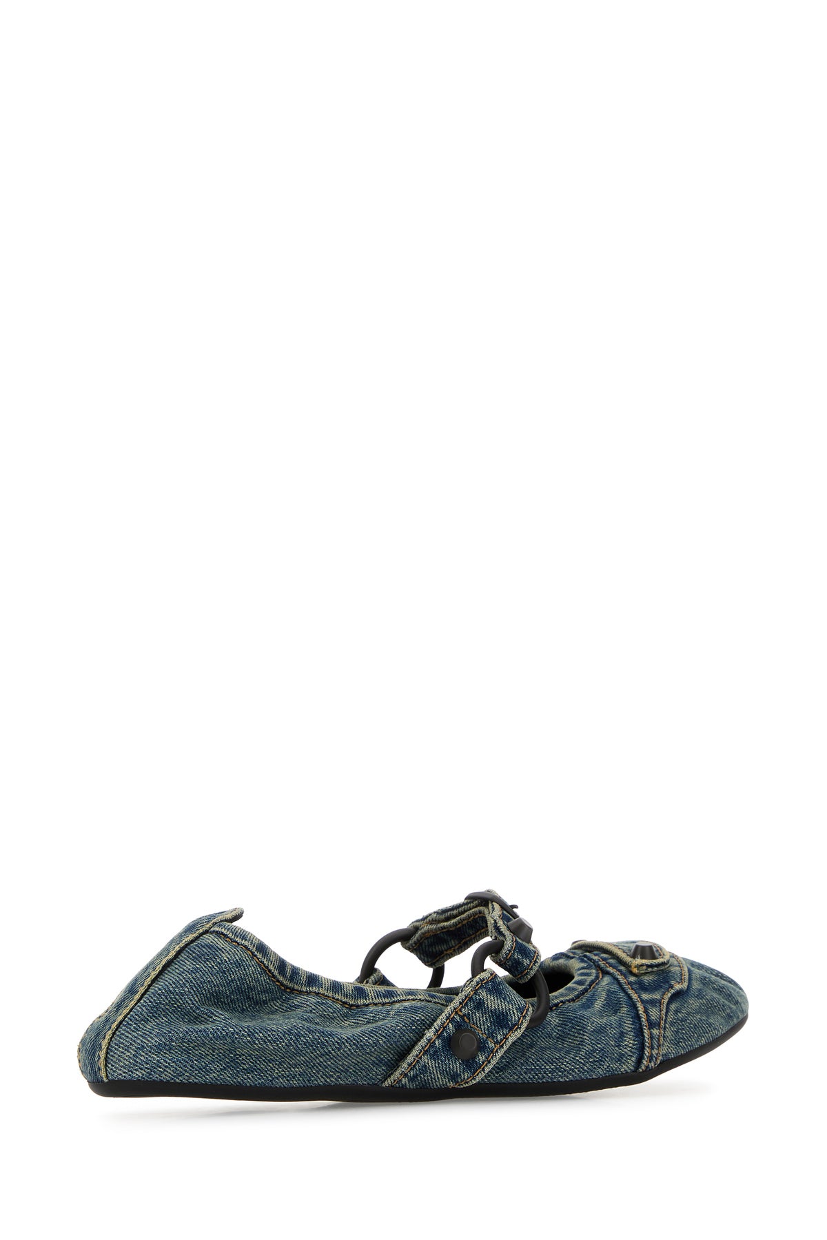Ballerinas realized in stonewashed pure cotton denim enriched by metal studs on the toe and on the strap on the instep.