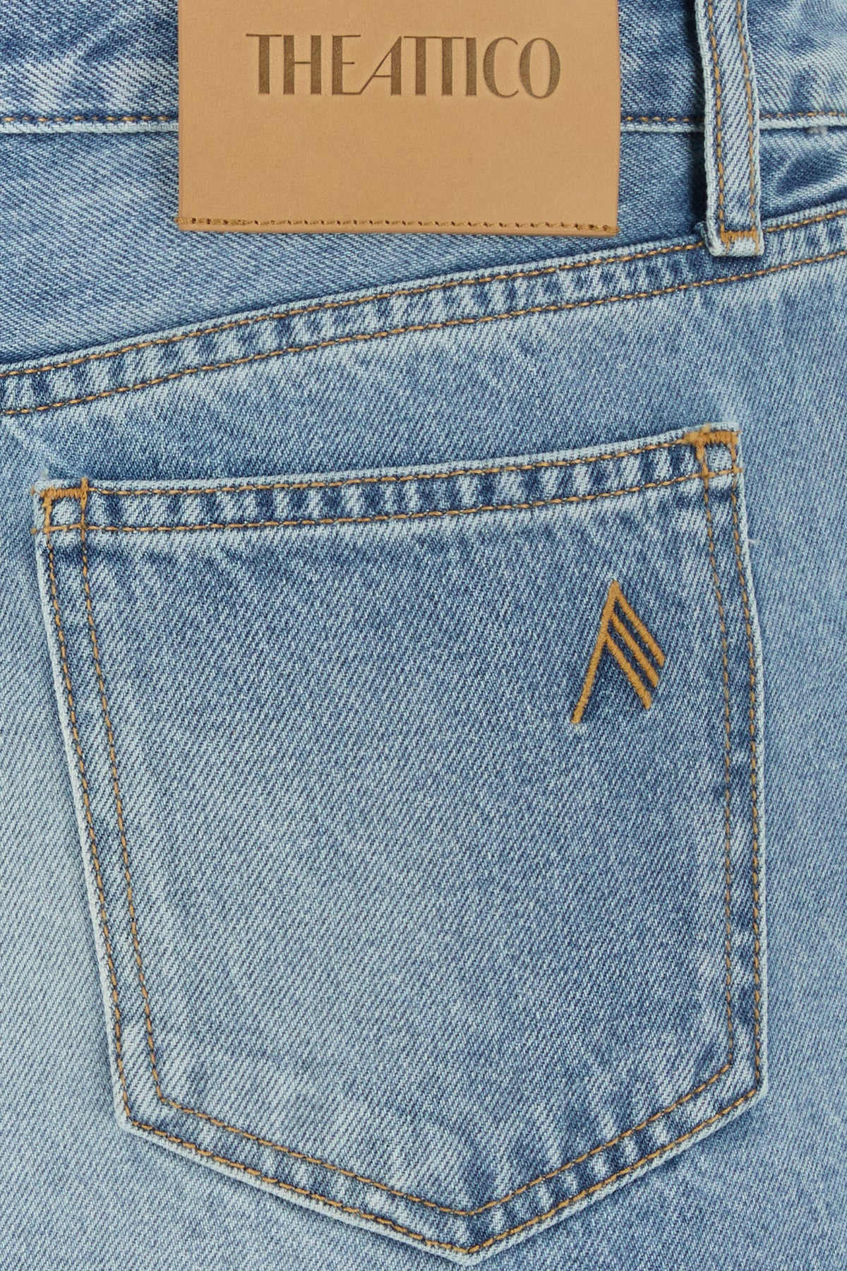 Mini skirt realized in pure cotton denim characterized by contrasting embroidered logo at the back.