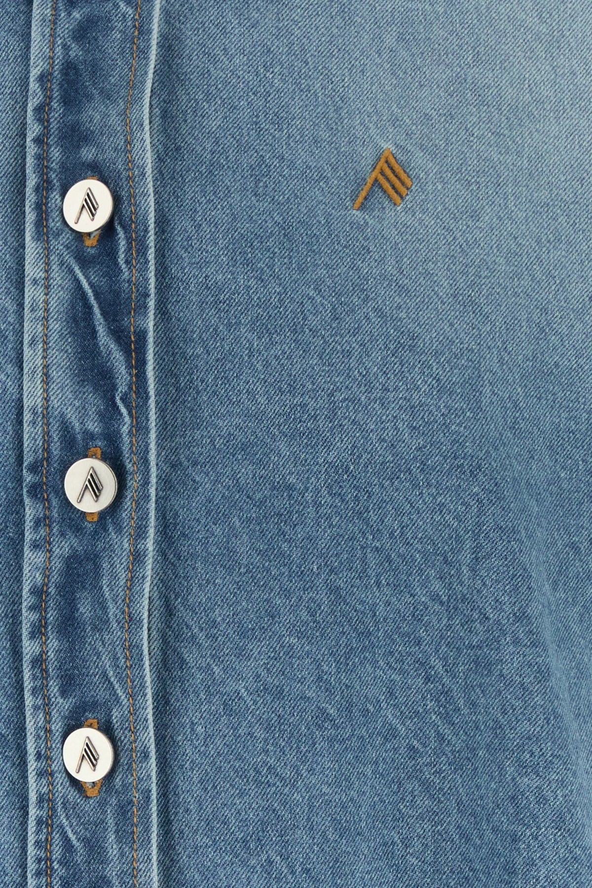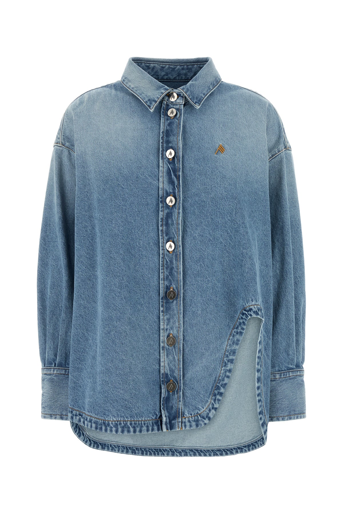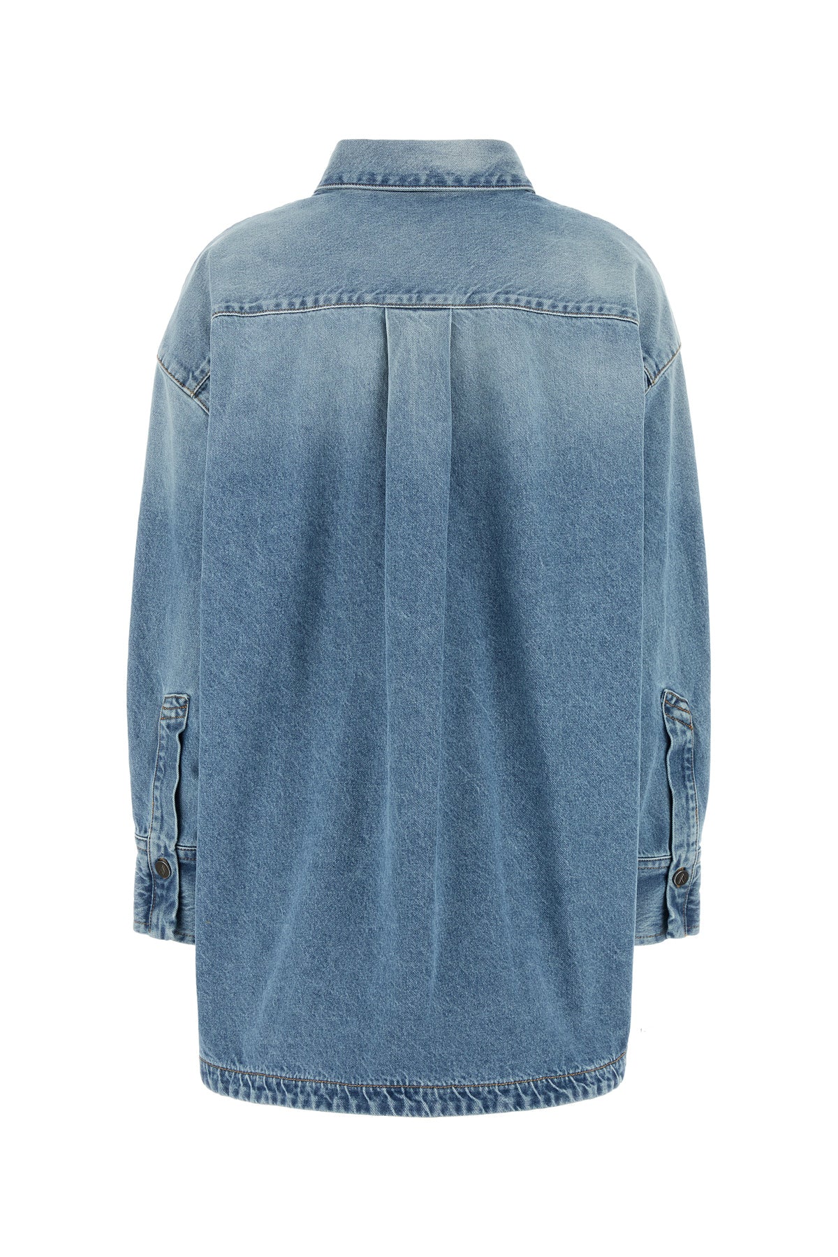 Oversize shirt realized in stonewashed pure cotton denim characterized by contrasting embroidered logo on the chest.