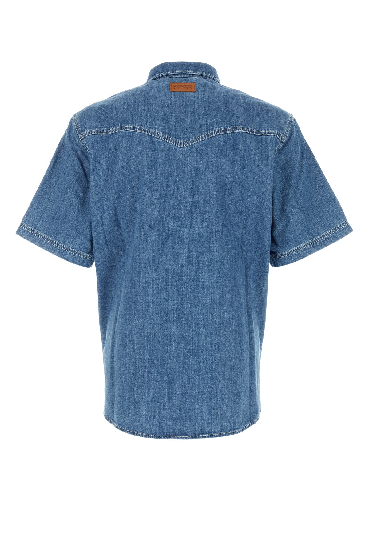Short-sleeves shirt realized in pure cotton denim enriched by contrasting logoed label at the back.