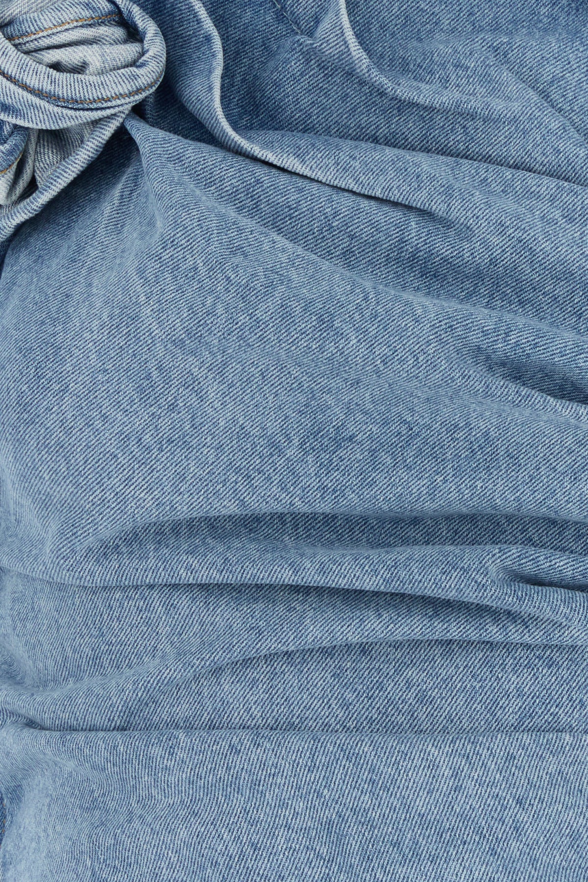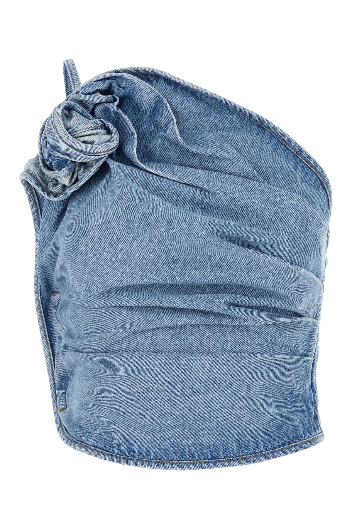 Draped top realized in stonewashed pure cotton denim enriched by floral embellishment at the top.