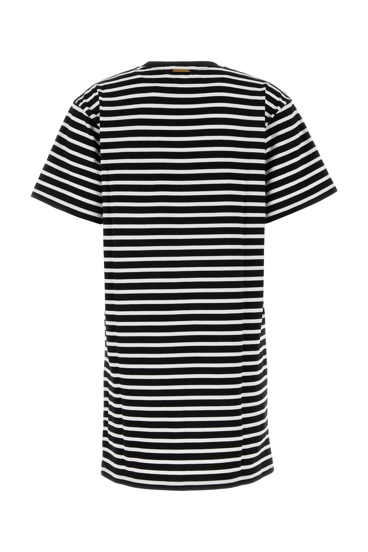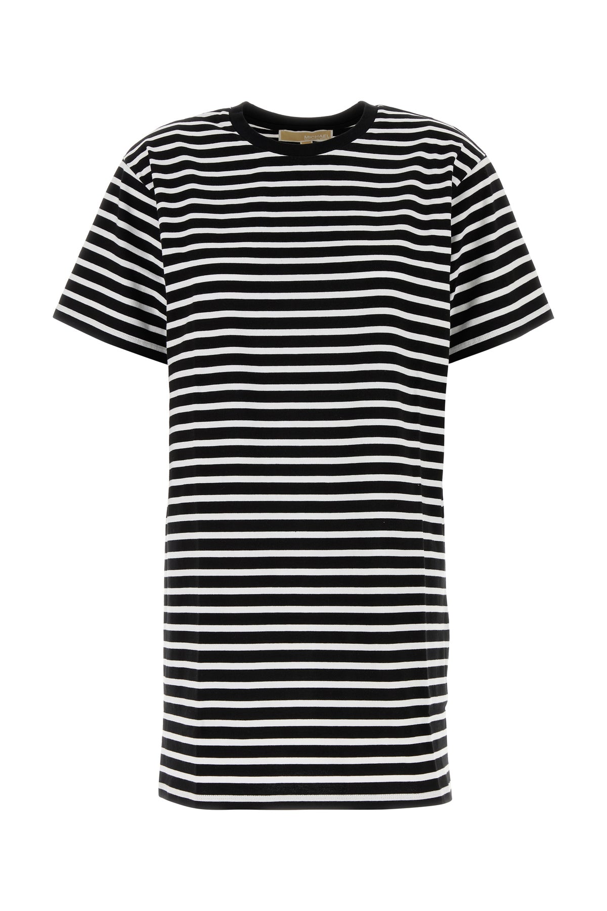 T-shirt dress realized in pure cotton characterized by striped embroidery on the entire surface.