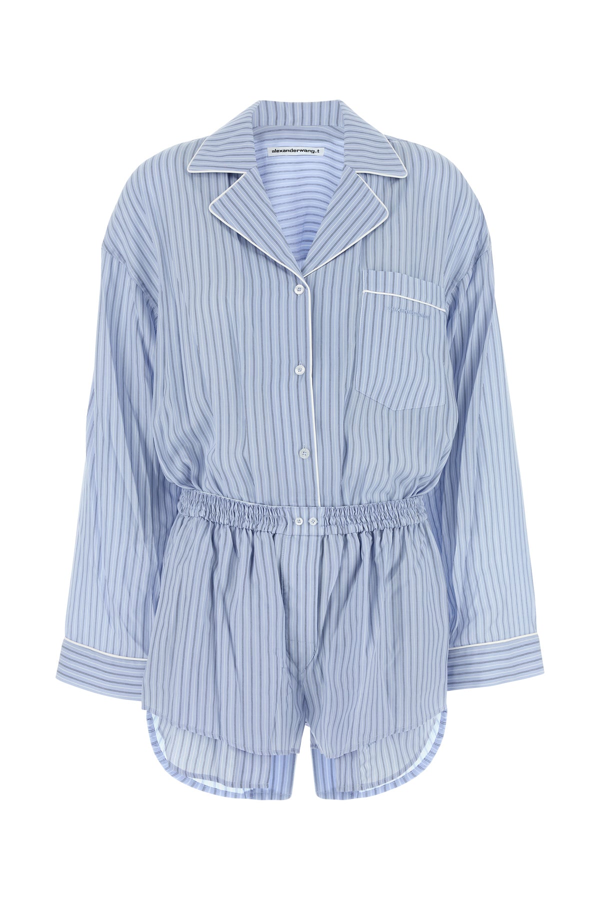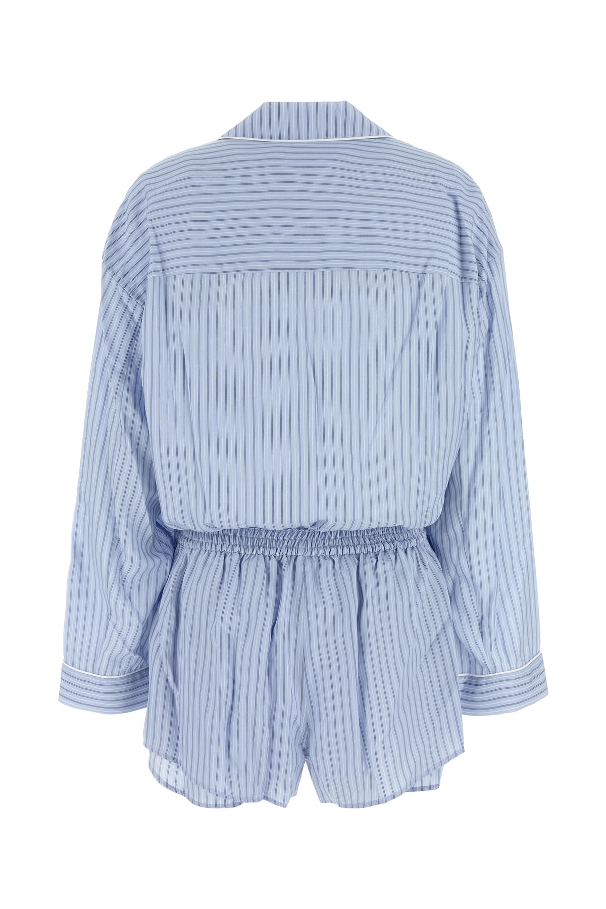 Short jumpsuit realized in lyocell characterized by striped embroidery on the entire surface and embroidered logo on the chest.
