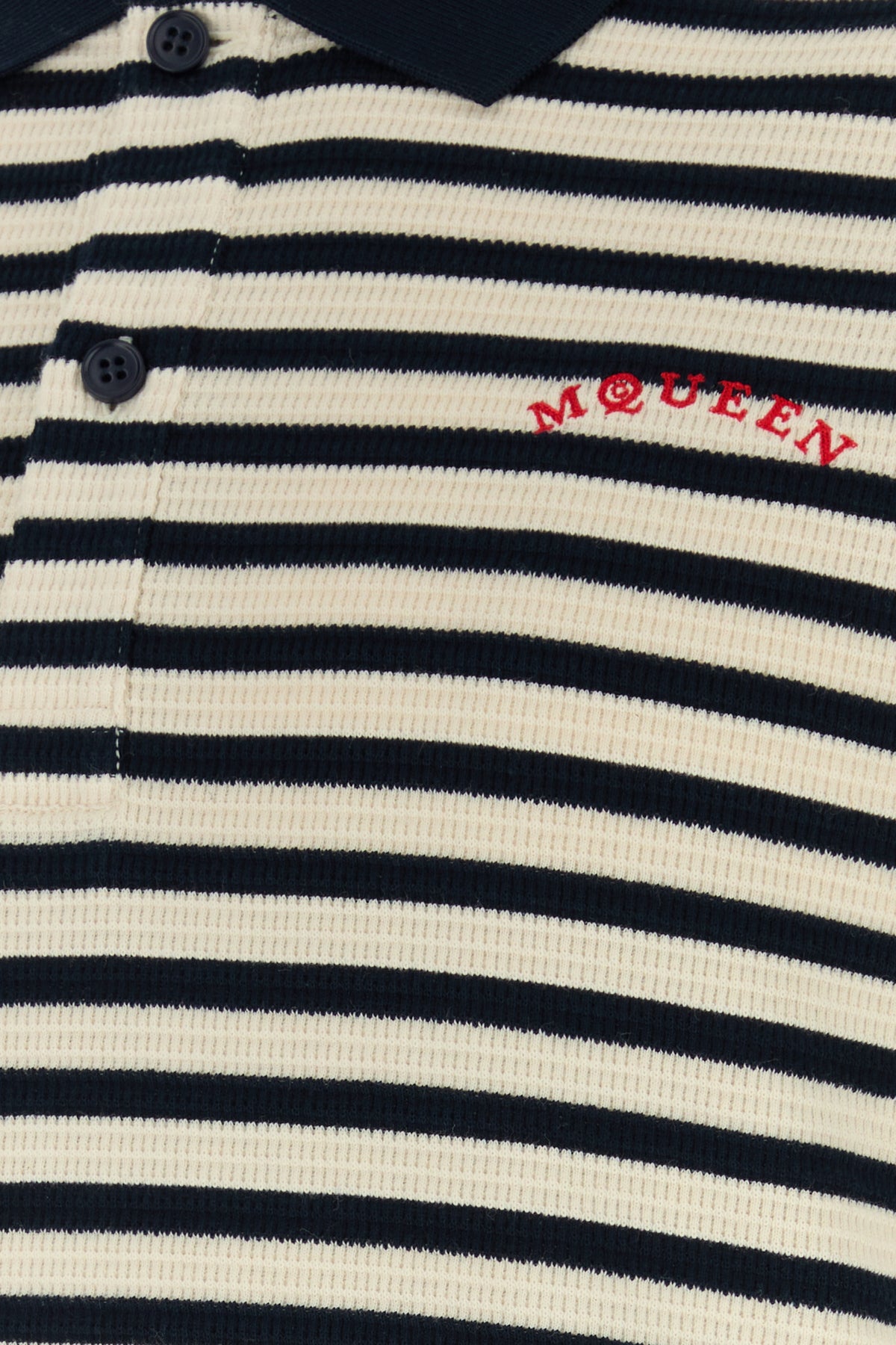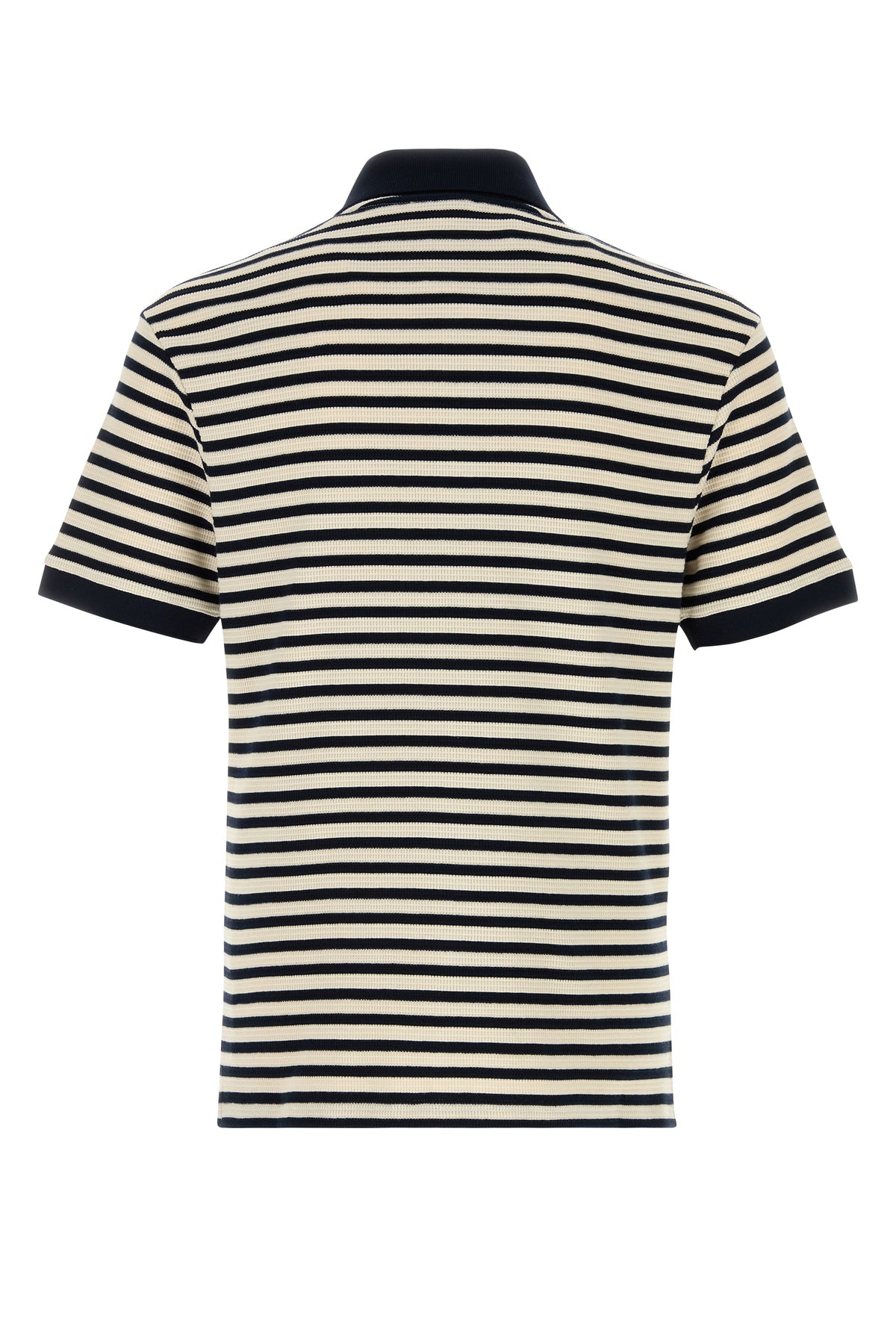 Polo shirt realized in stretch jersey characterized by striped embroidery on the entire surface and embroidered logo on the chest.