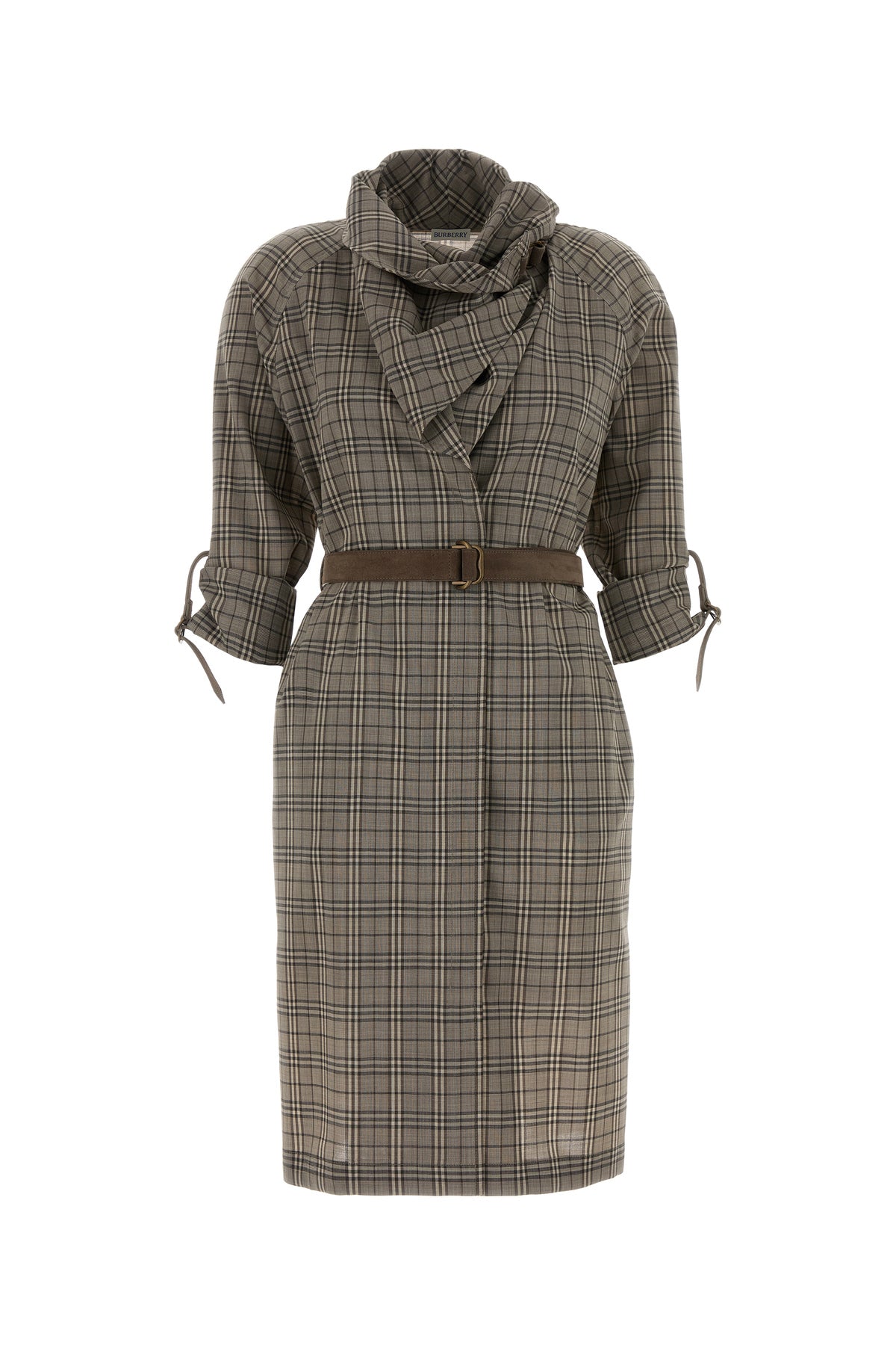 Midi-length dress realized in stretch wool characterized by Burberry Check motif embroidery on the entire surface enriched by detachable suede belt with metal B buckle.