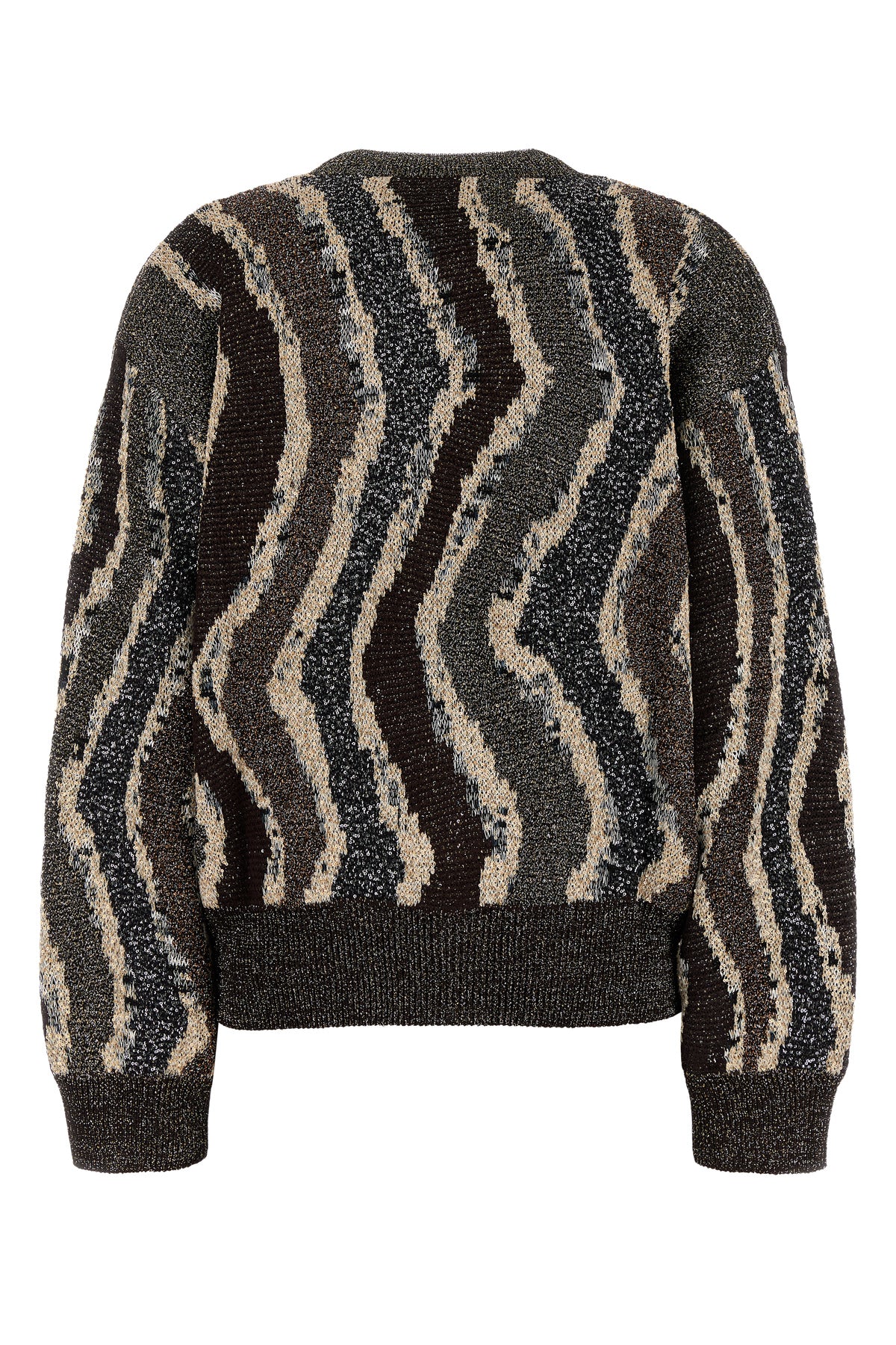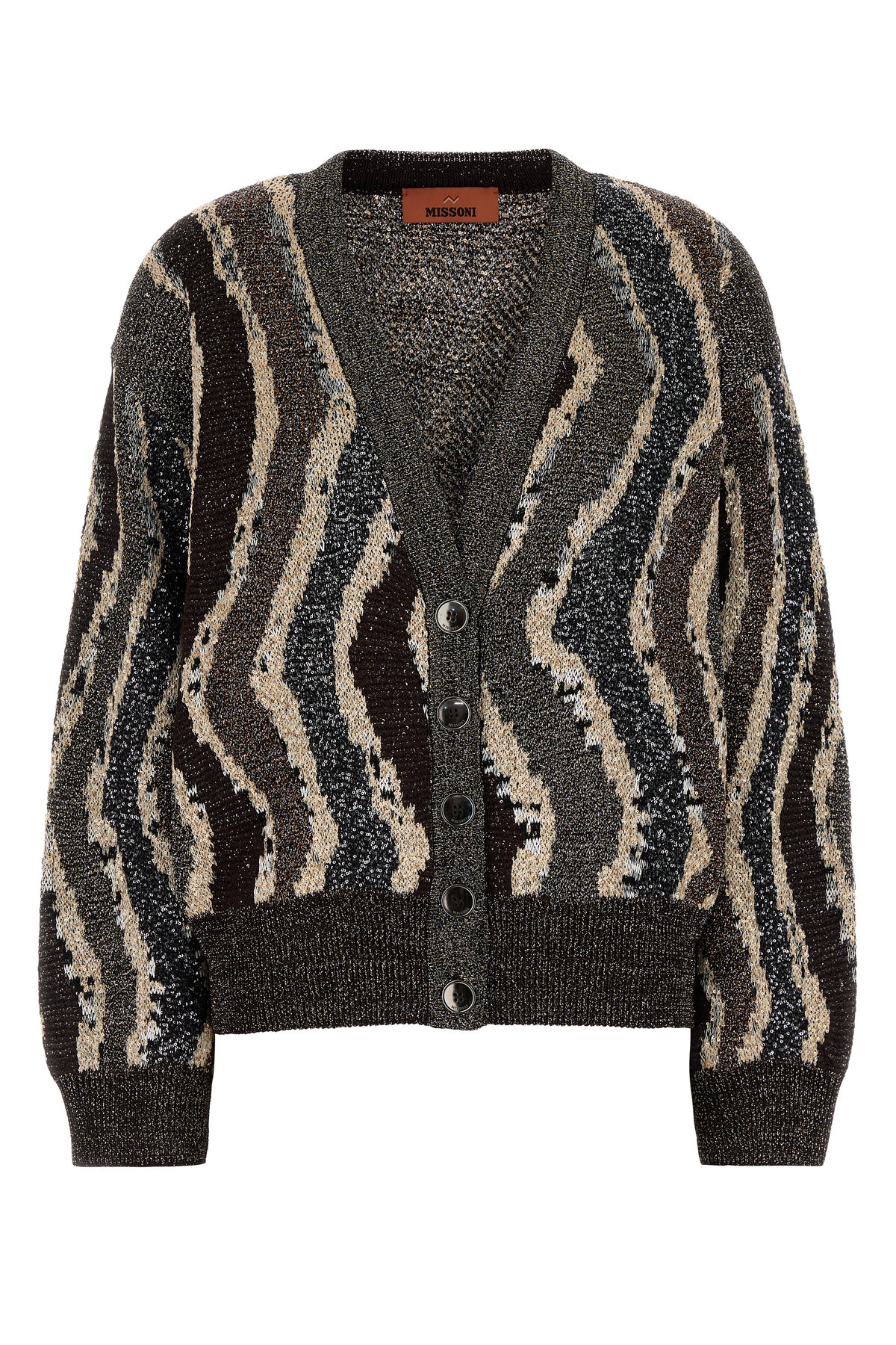 Cardigan realized in viscose blend with lurex threads characterized by peculiar embroidery on the entire surface.