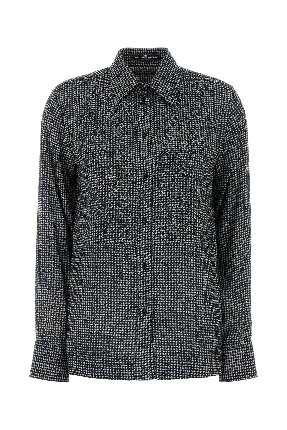 Shirt realized in viscose characterized by houndstooth motif embroidery on the entire surface enriched by rhinestones at the top.