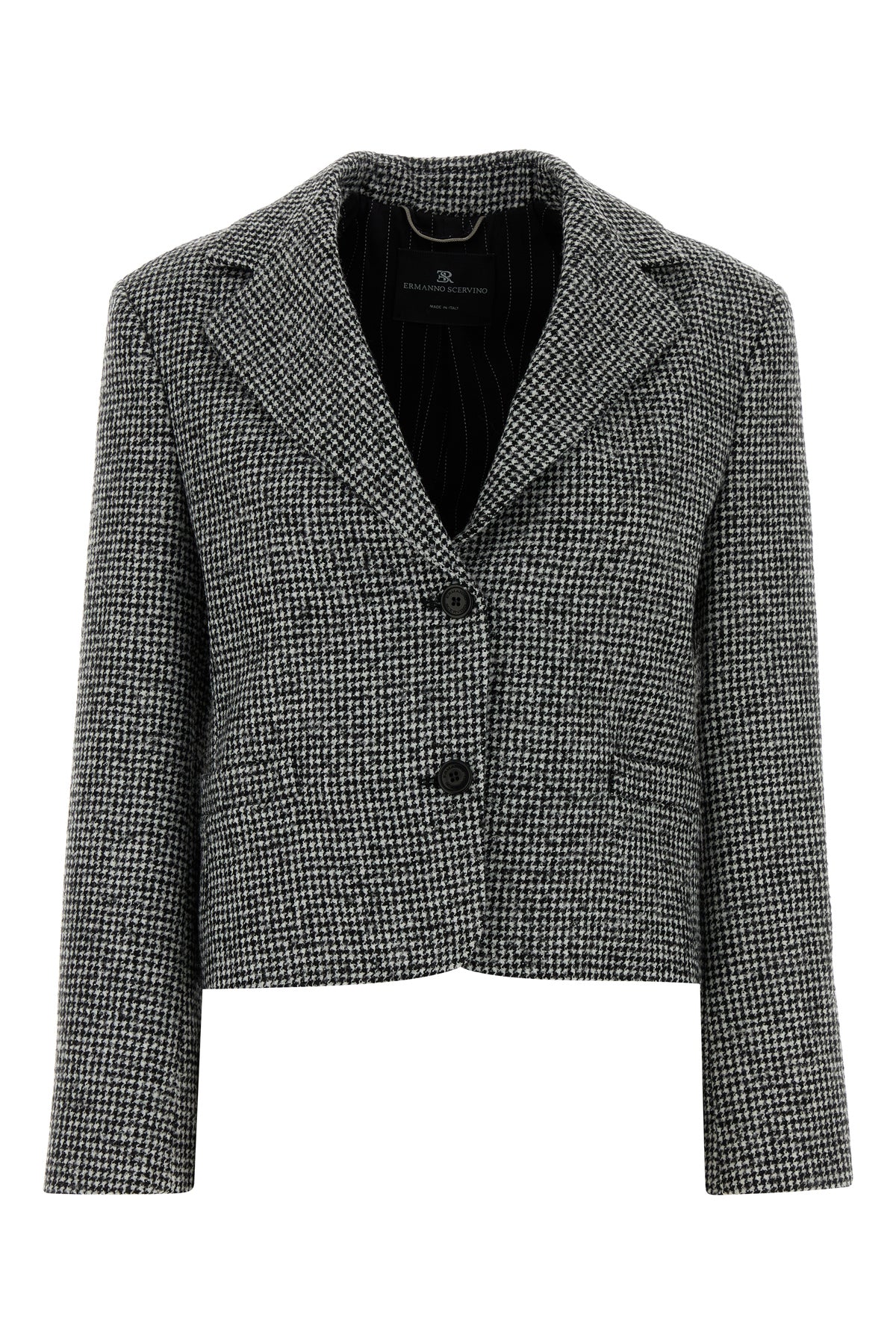 Blazer realized in wool blend characterized by houndstooth embroidery on the entire surface.