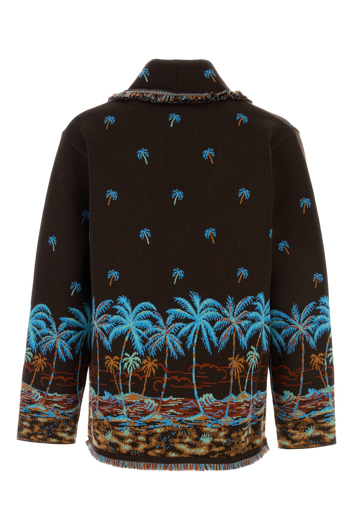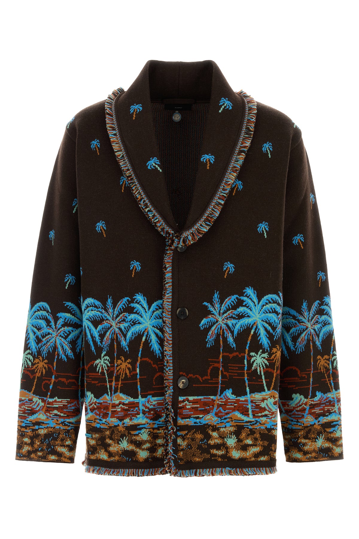 Cardigan realized in pure virgin wool with fringed trimmings characterized by Tale of a Hawaiian embroidery on the entire surface.