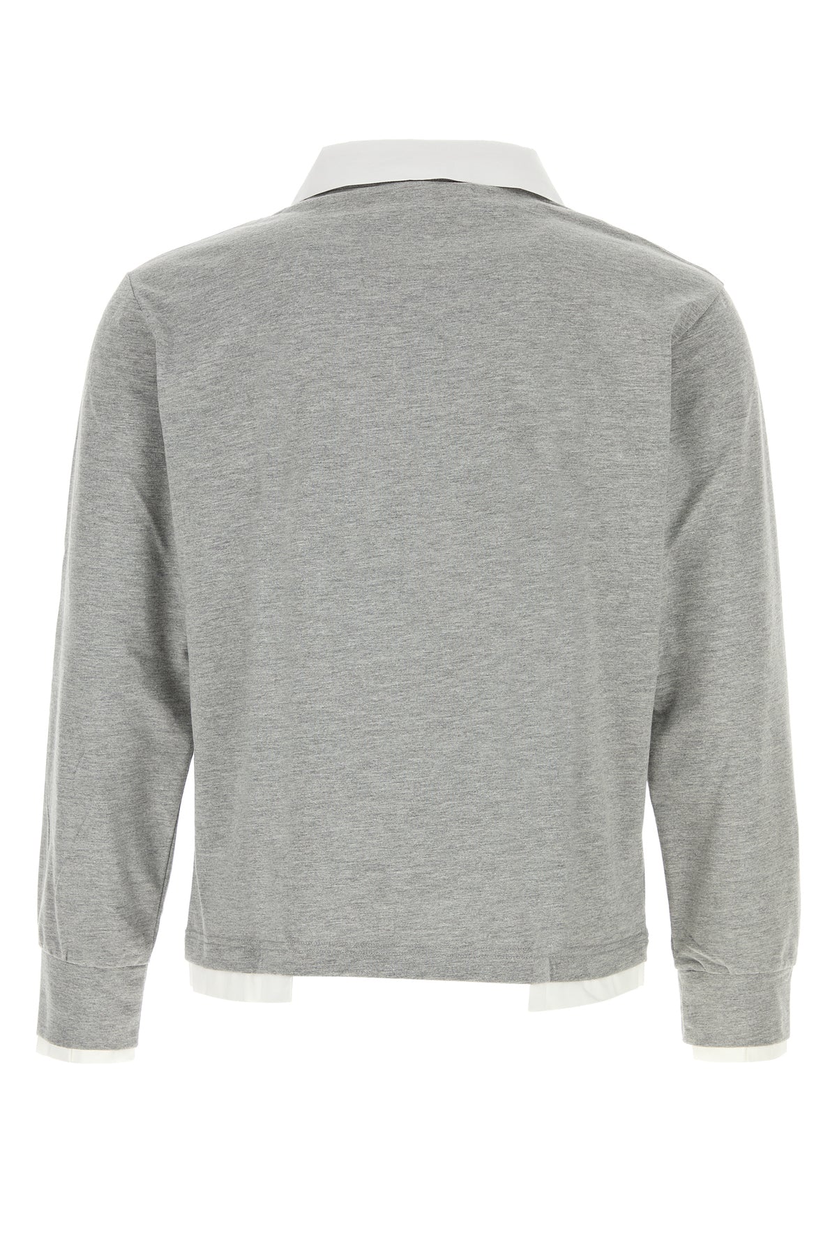 Long-sleeves polo shirt realized in pure cotton with contrasting poplin inserts at the tip and on the hemline.