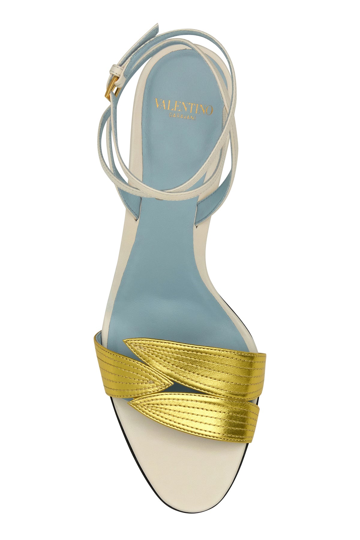 Sandals realized in leather enriched by VLogo Signature metal detail at the back.