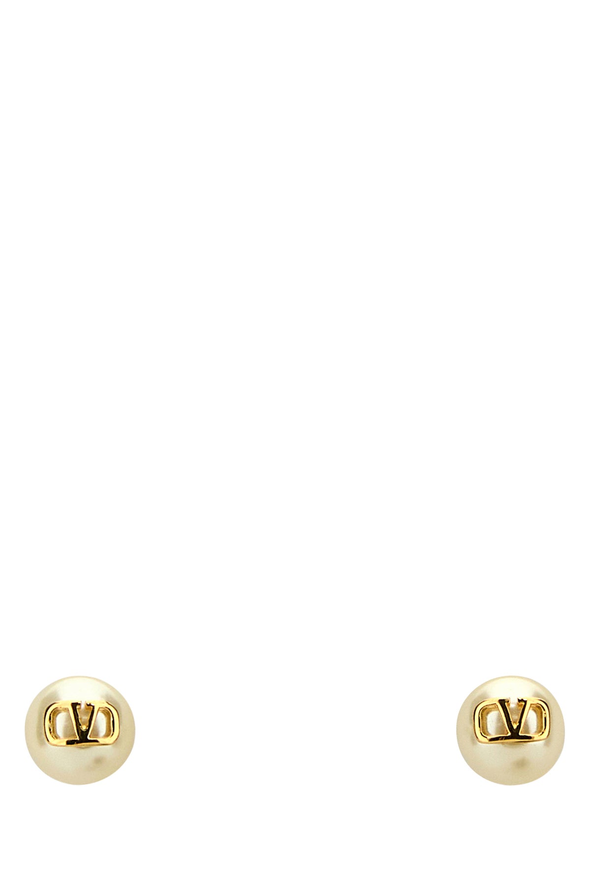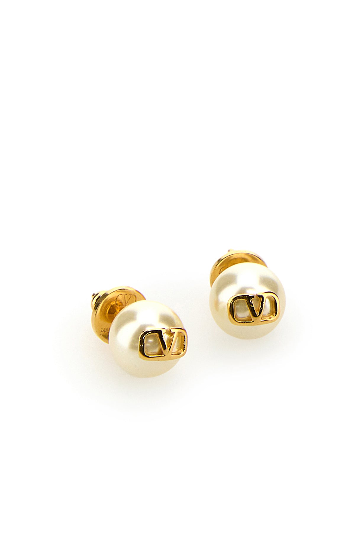 Pendant earrings realized in pearls enriched by VLogo Signature metal detail.
