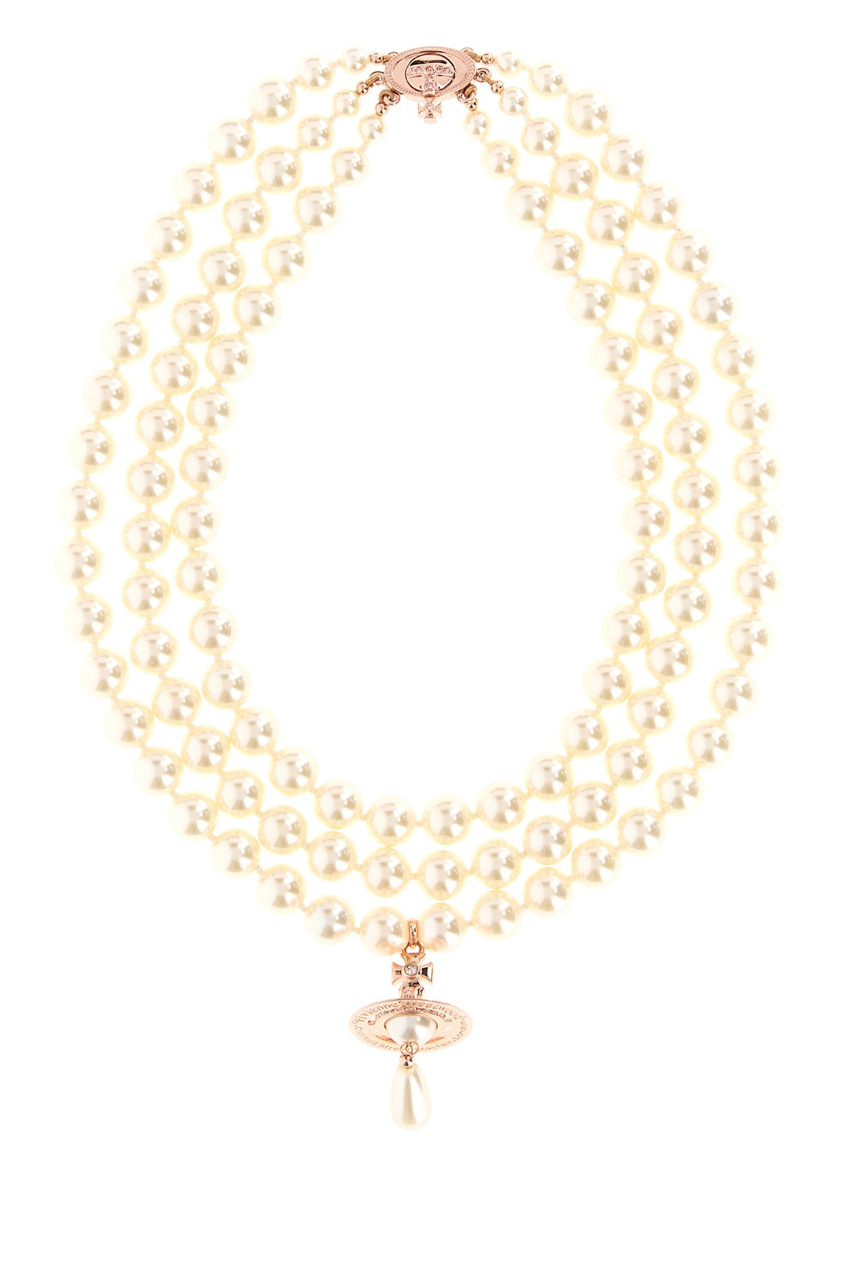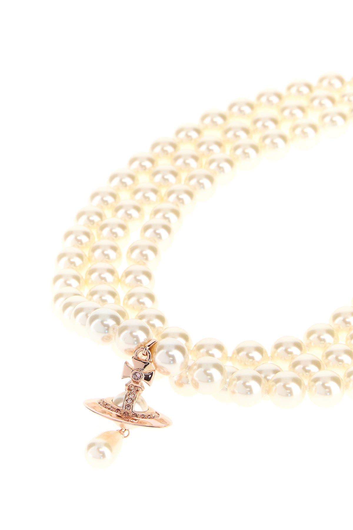 Choker realized in pearls enriched by metal Orb charm with rhinestones.