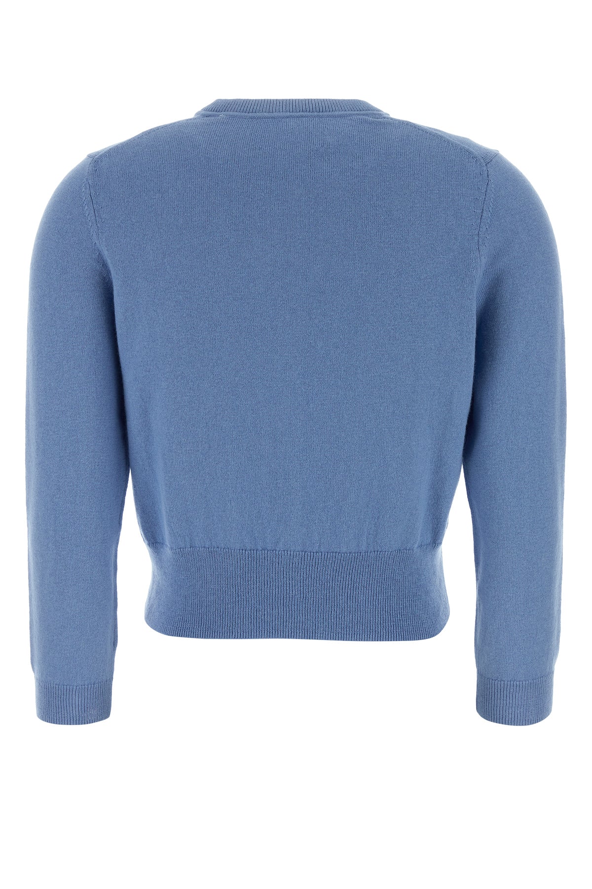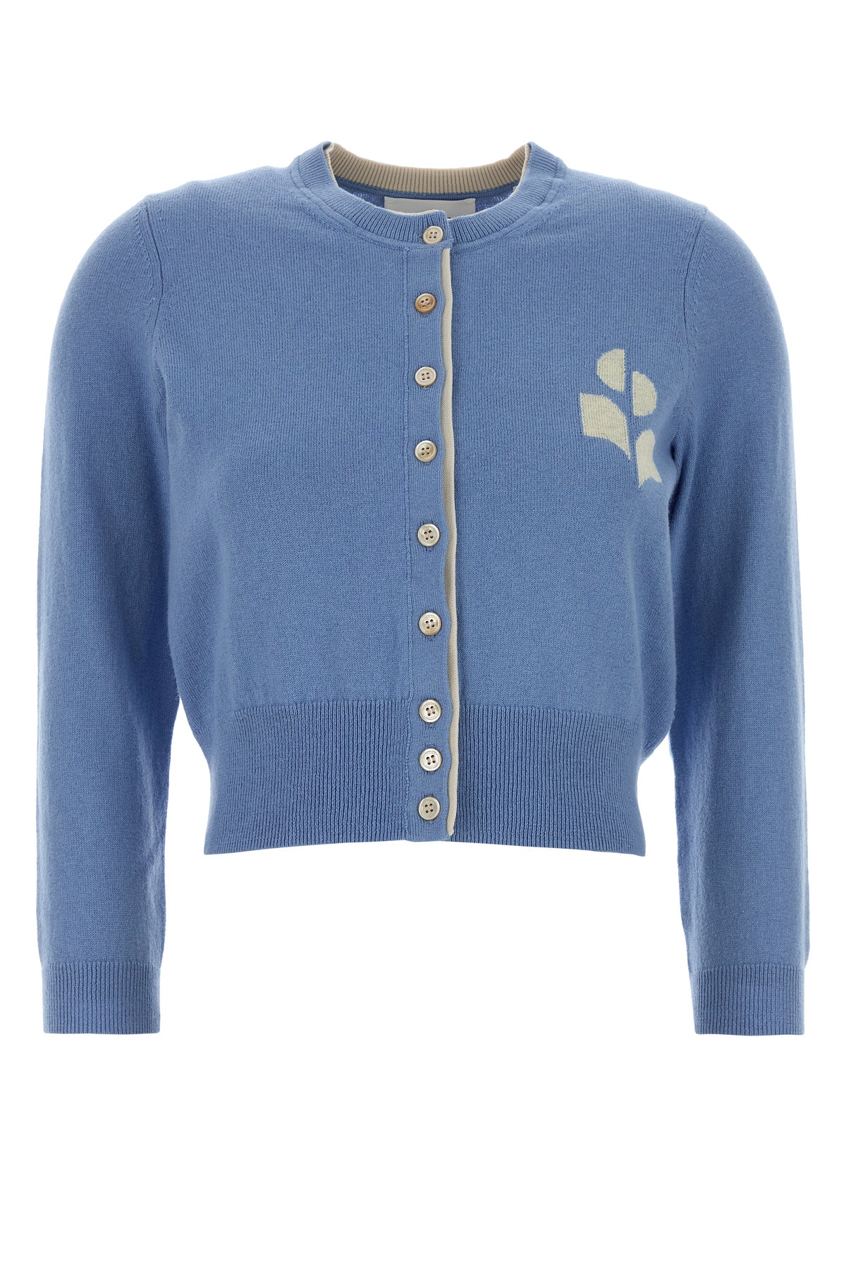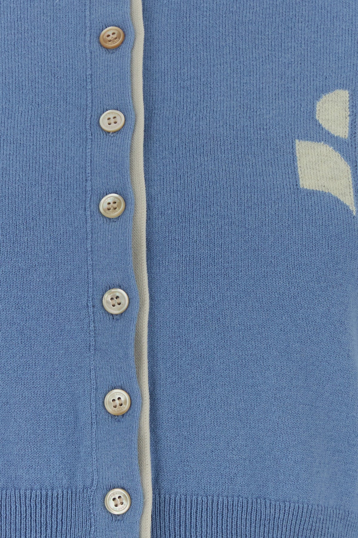 Cropped-cut cardigan realized in cotton and wool characterized by contrasting embroidered logo on the chest.