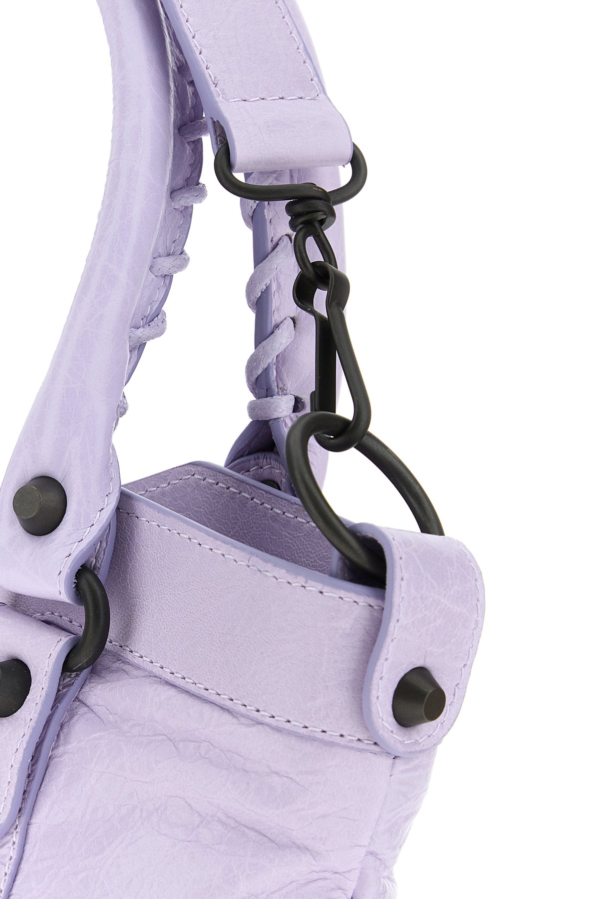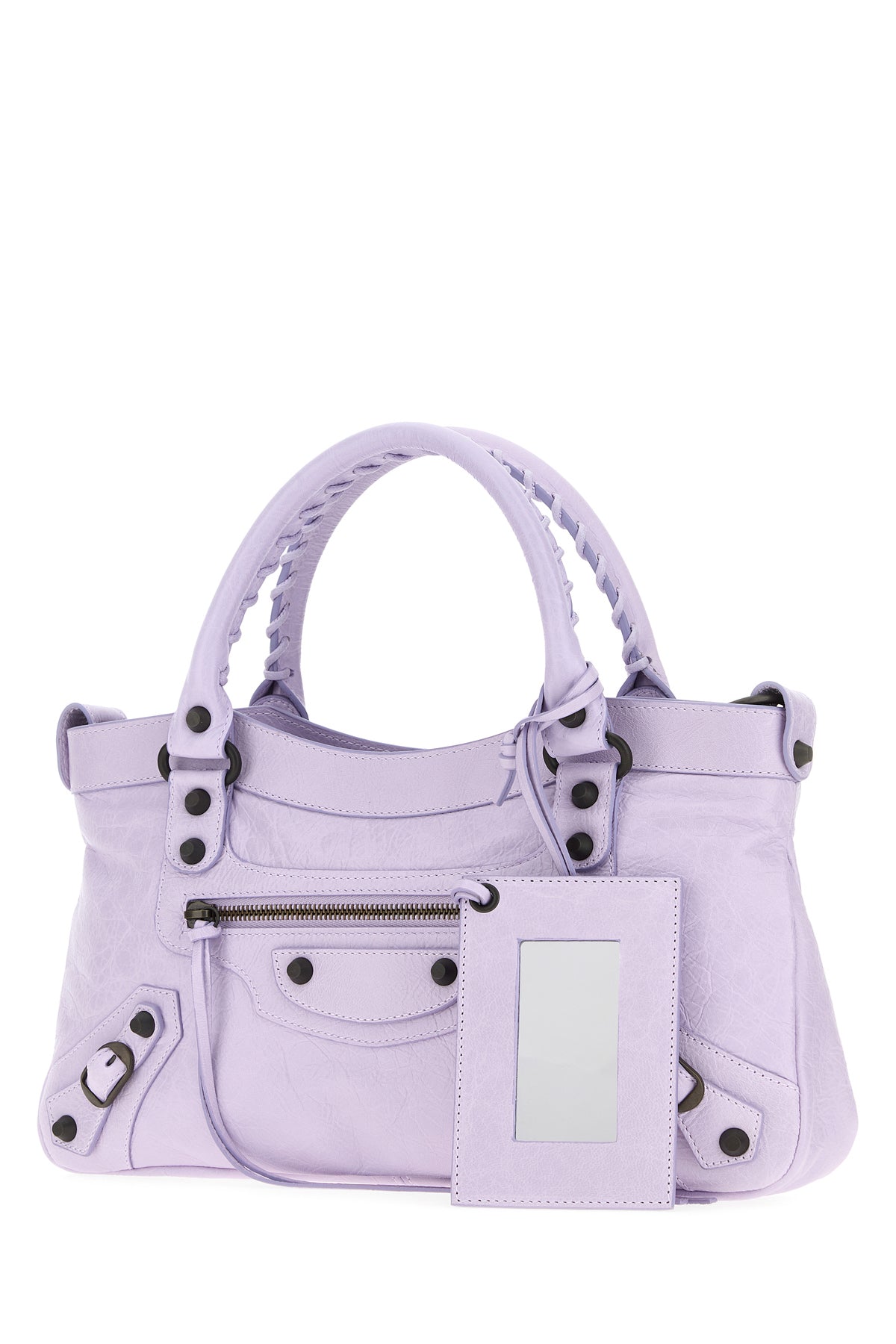 Handbag realized in Arena Storico lamb leather enriched by decorative straps, metal studs and detachable mirror at the front.