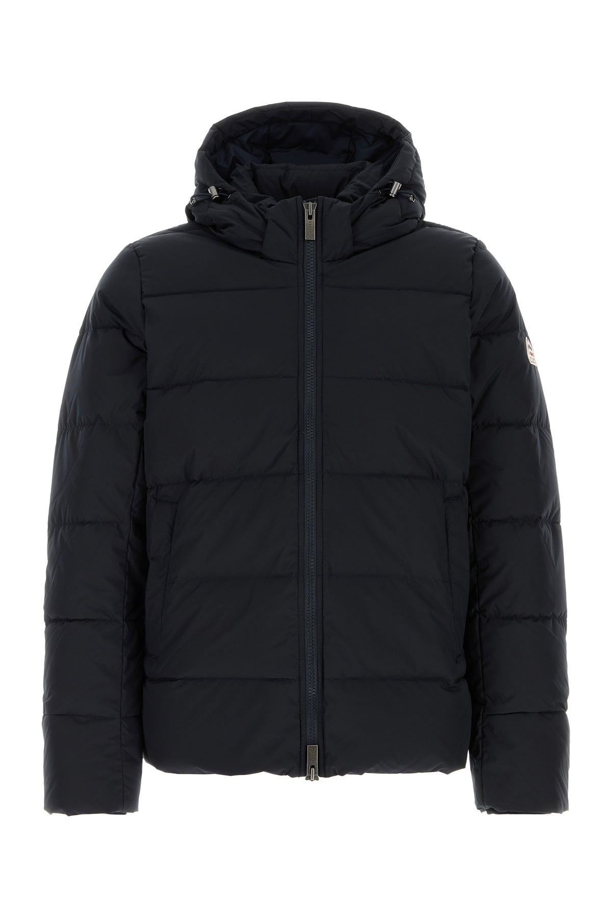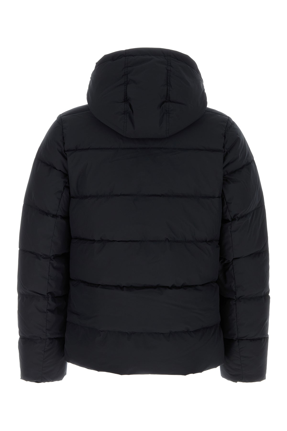 Down jacket realized in quilted polyester enriched by contrasting logoed patch on the sleeve.