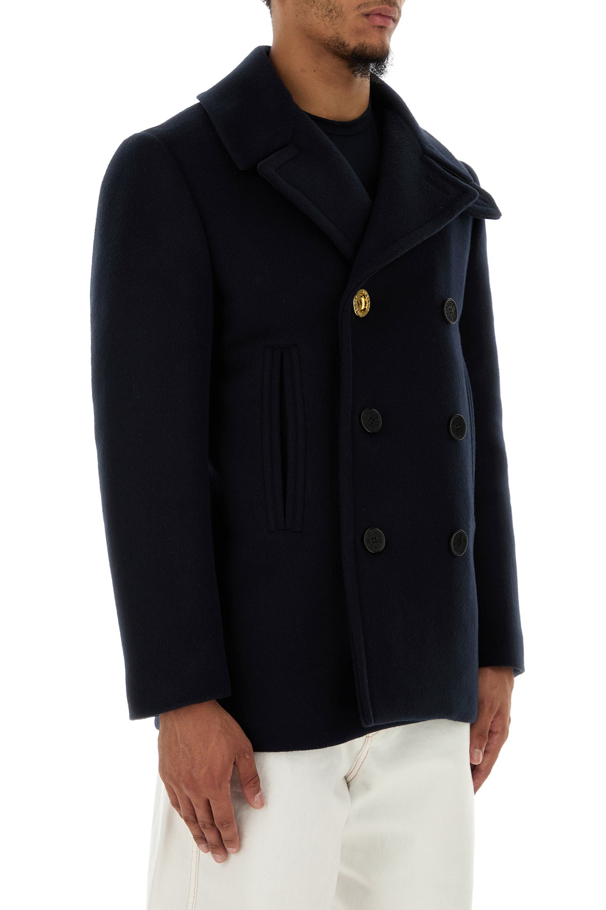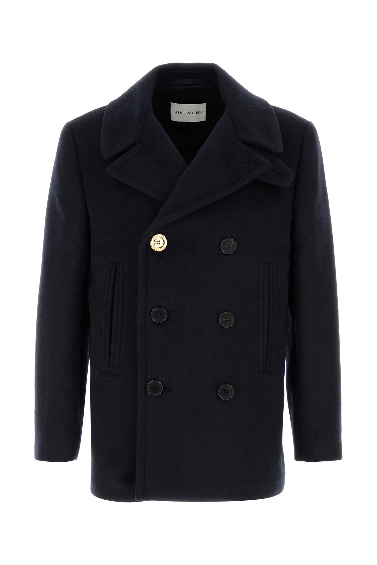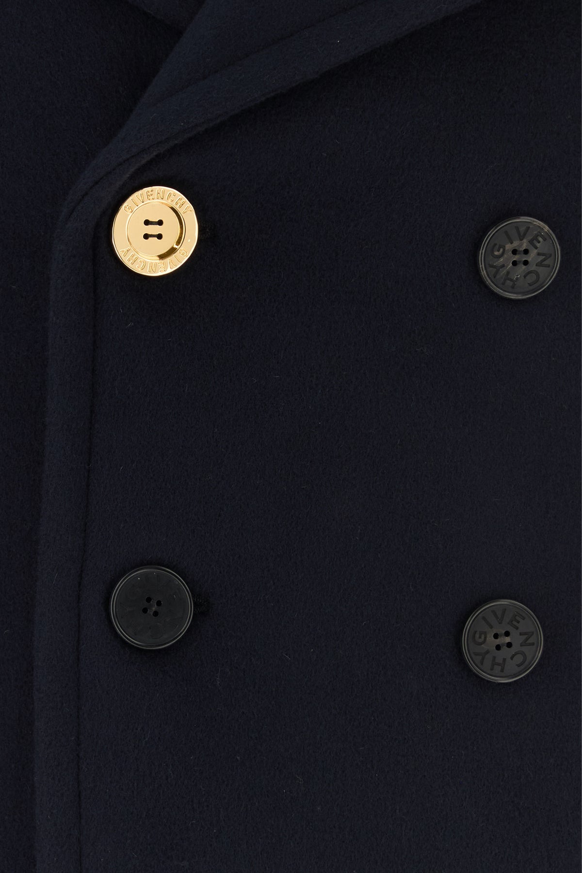 Short-cut coat realized in pure wool enriched by metal Givenchy button at the front.
