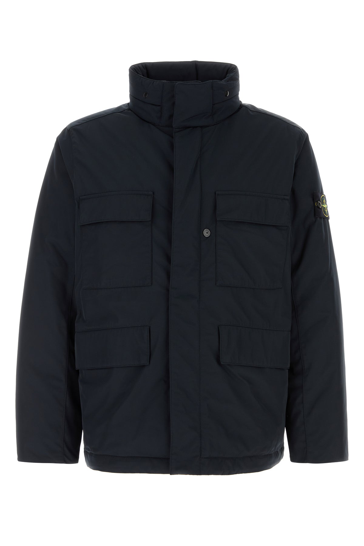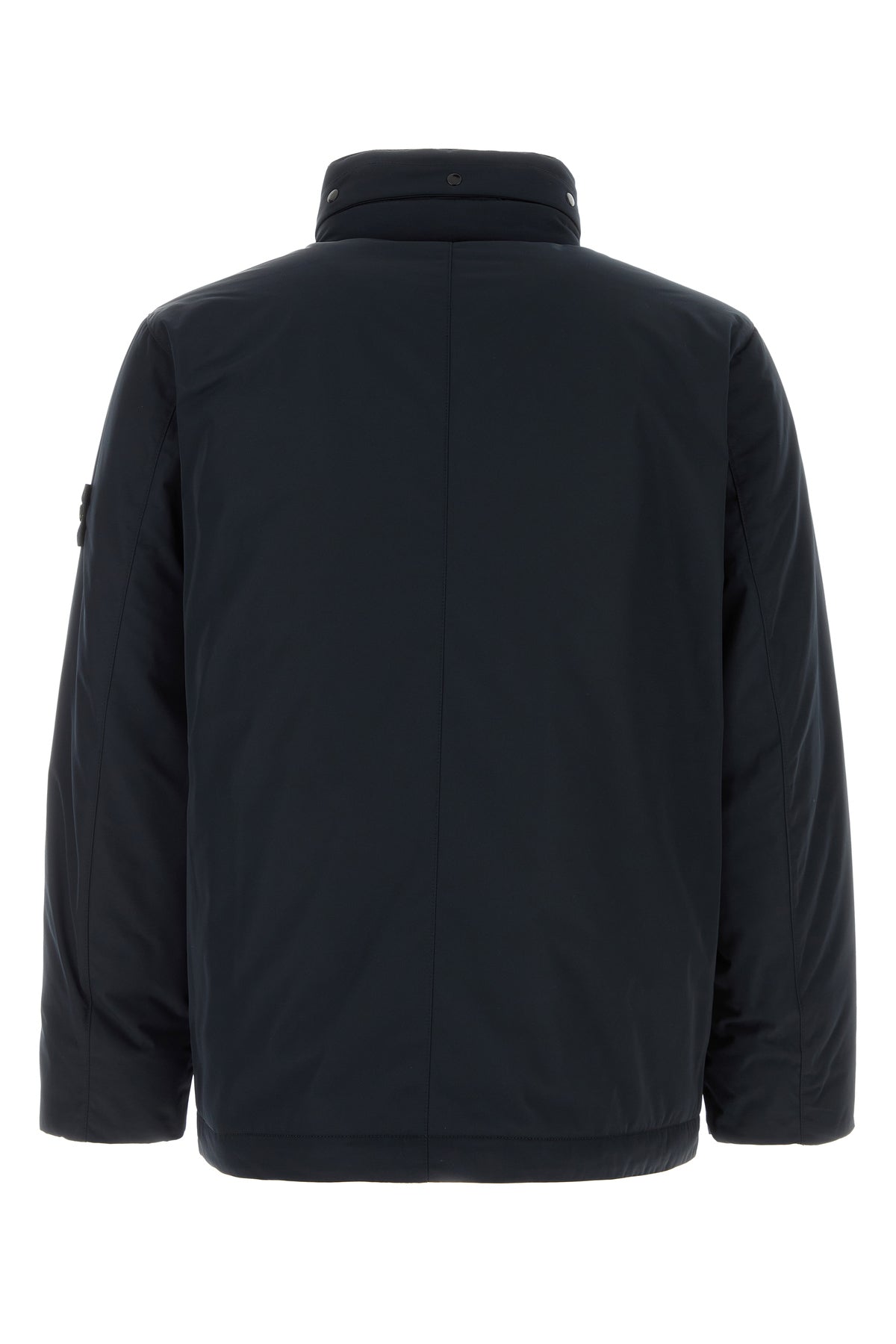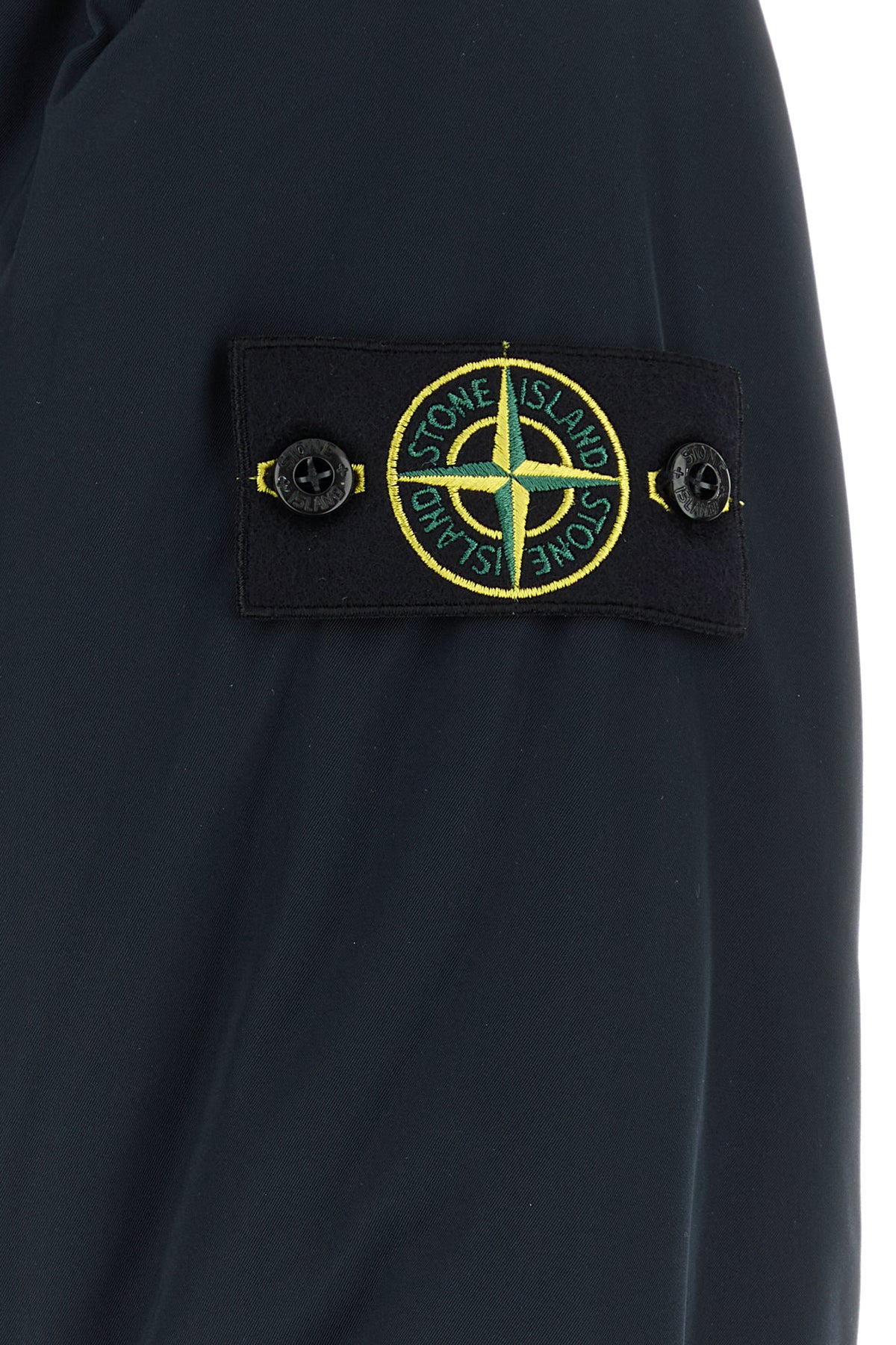 Padded jacket realized in polyester enriched by detachable logoed label on the sleeve.