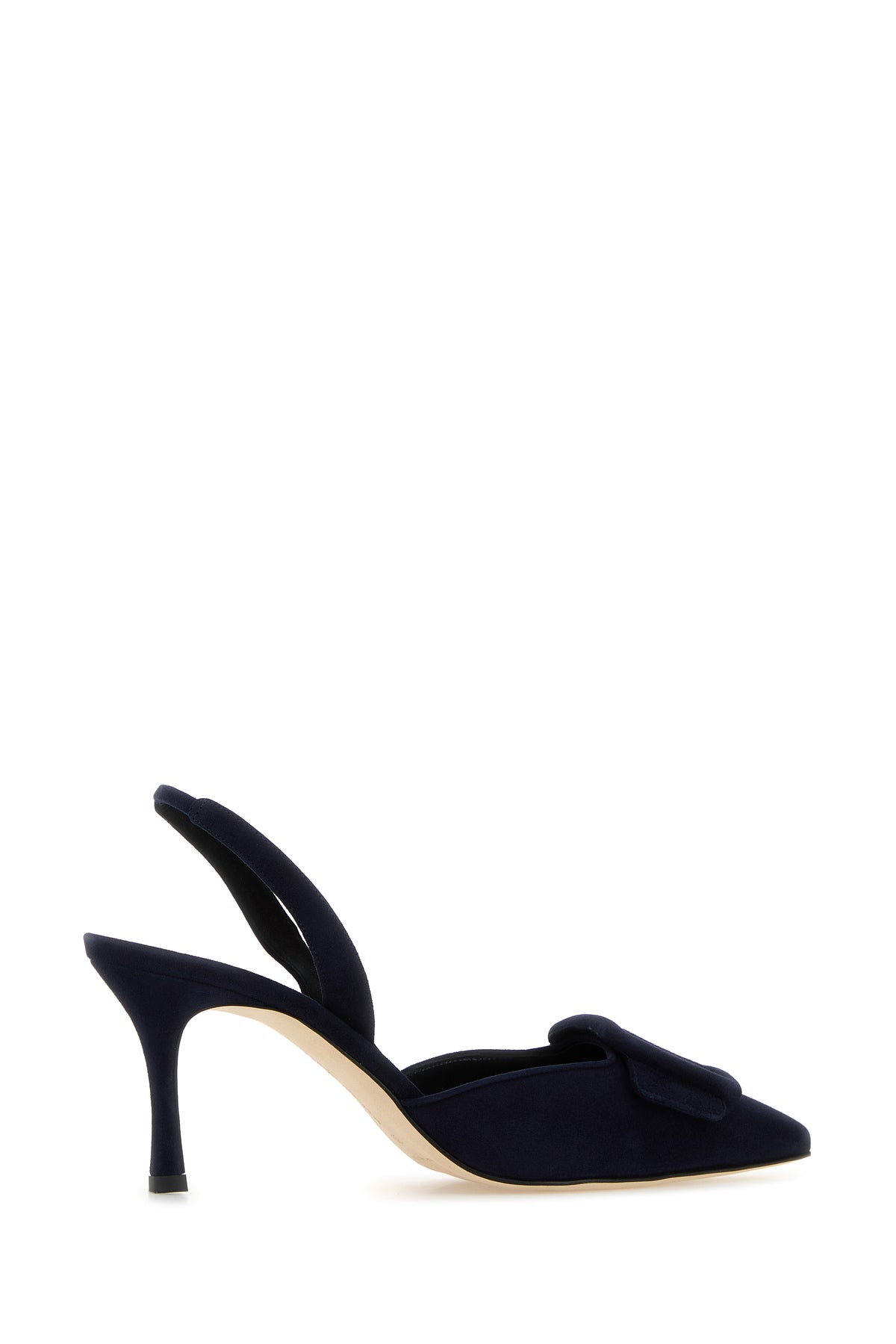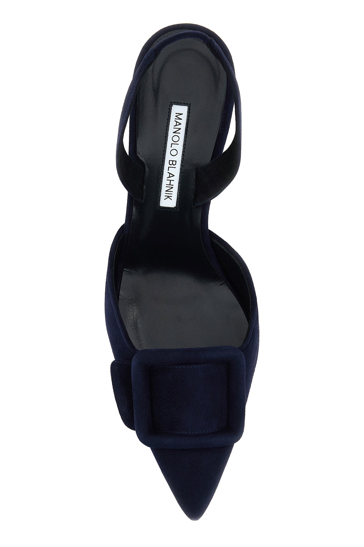 Slingback realized in suede enriched by tonal leather decorative buckle at the front.