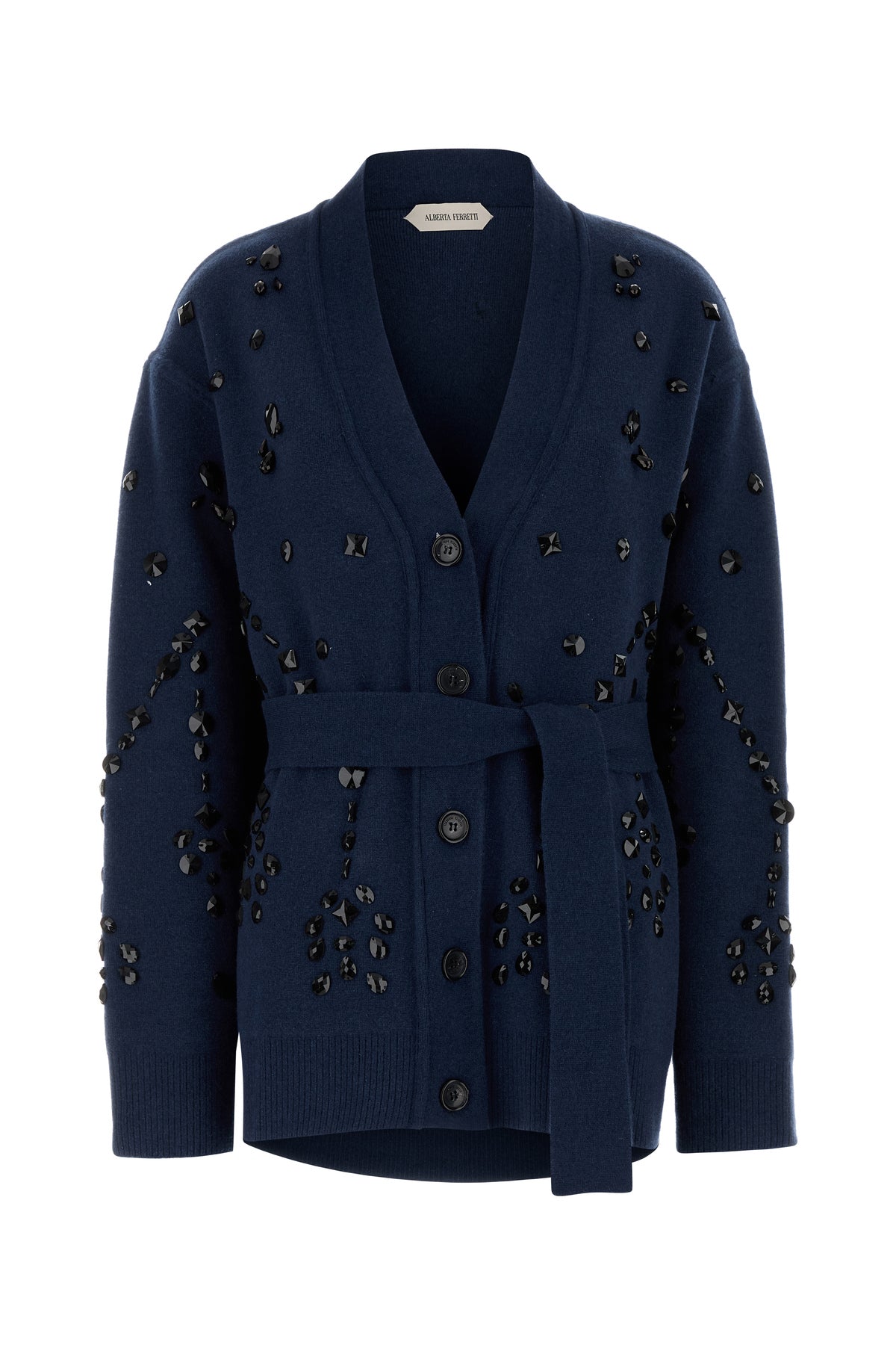 Oversize cardigan realized in virgin wool blend enriched by beads on the entire surface.