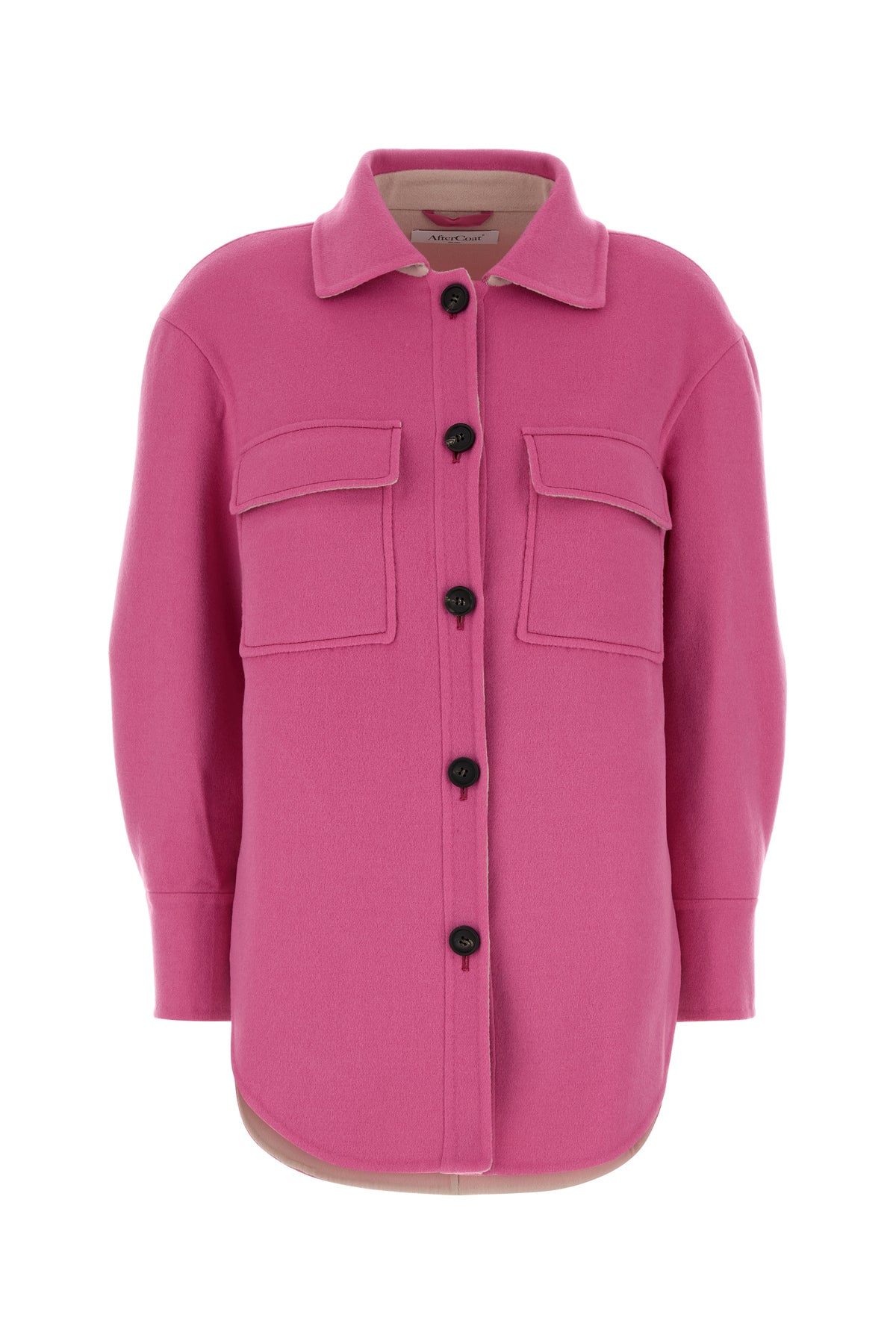 Short-cut coat realized in wool and cashmere characterized by collar.