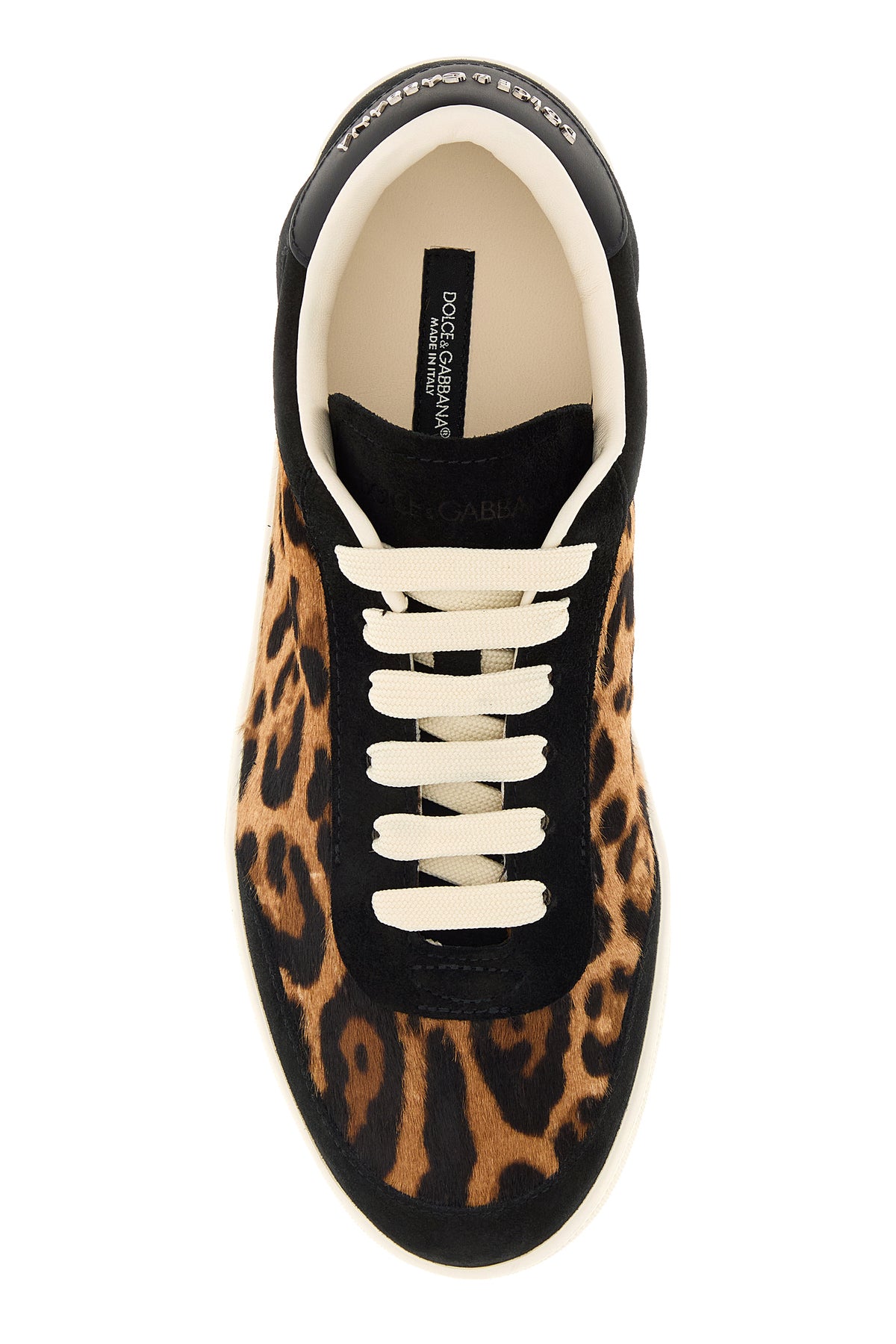 Sneakers realized in calf hair with suede inserts characterized by animal print on the entire surface enriched by metal lettering logo at the back.