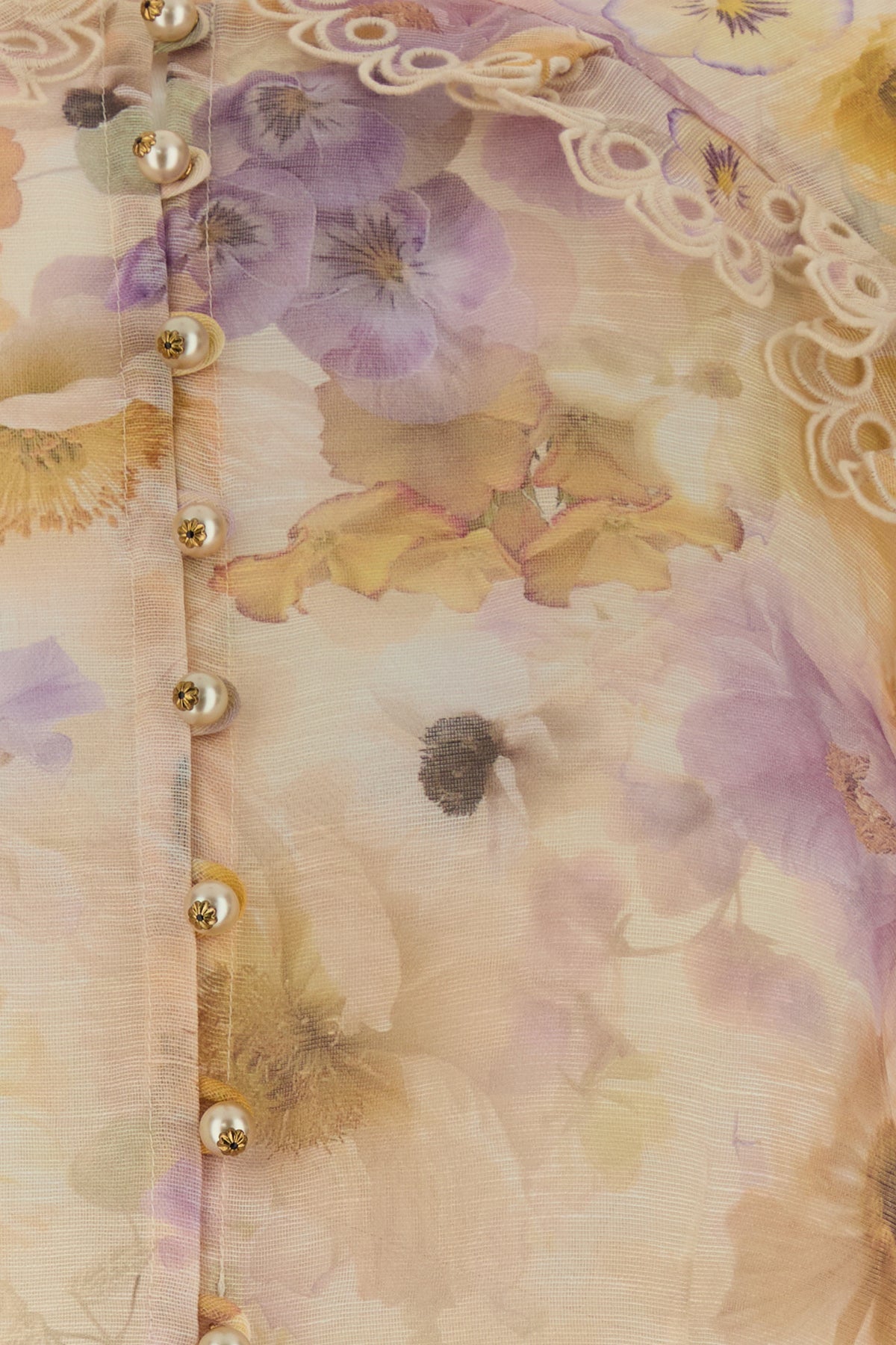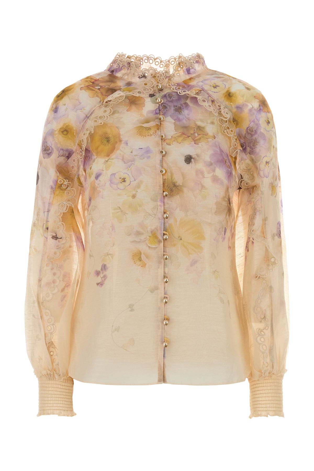Shirt realized in linen and silk characterized by floral print on the entire surface.