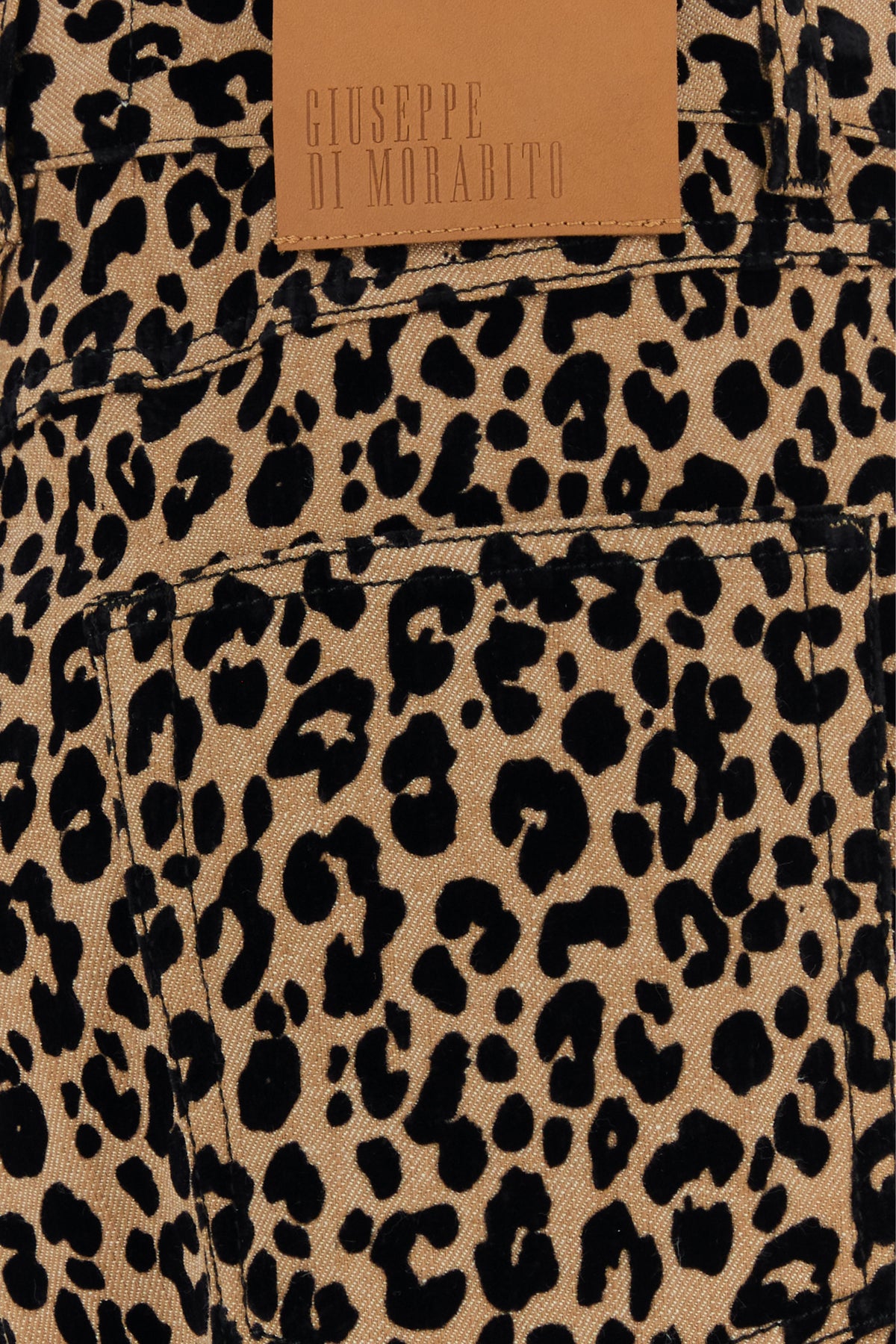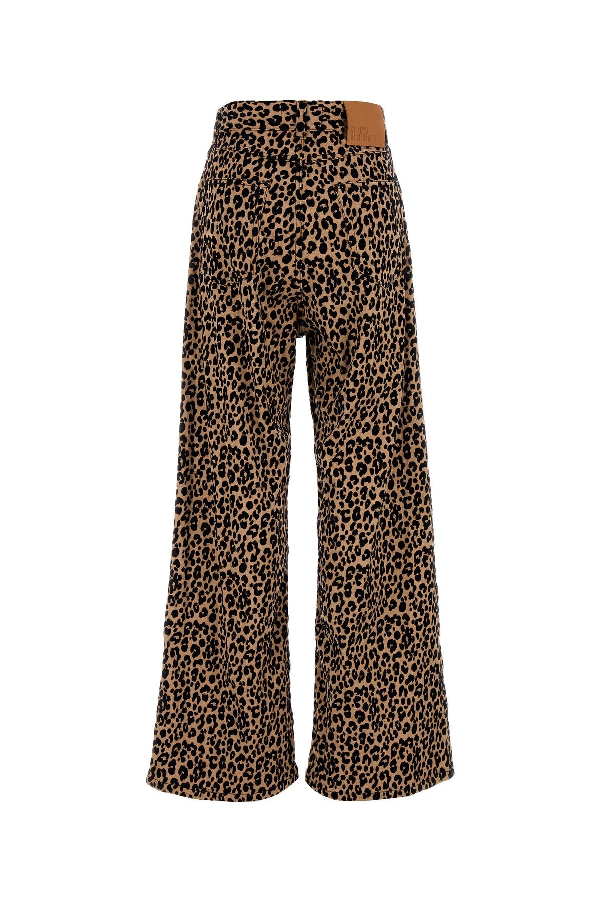 Pant realized in stretch polyester blend characterized by flocked animal print on the entire surface.