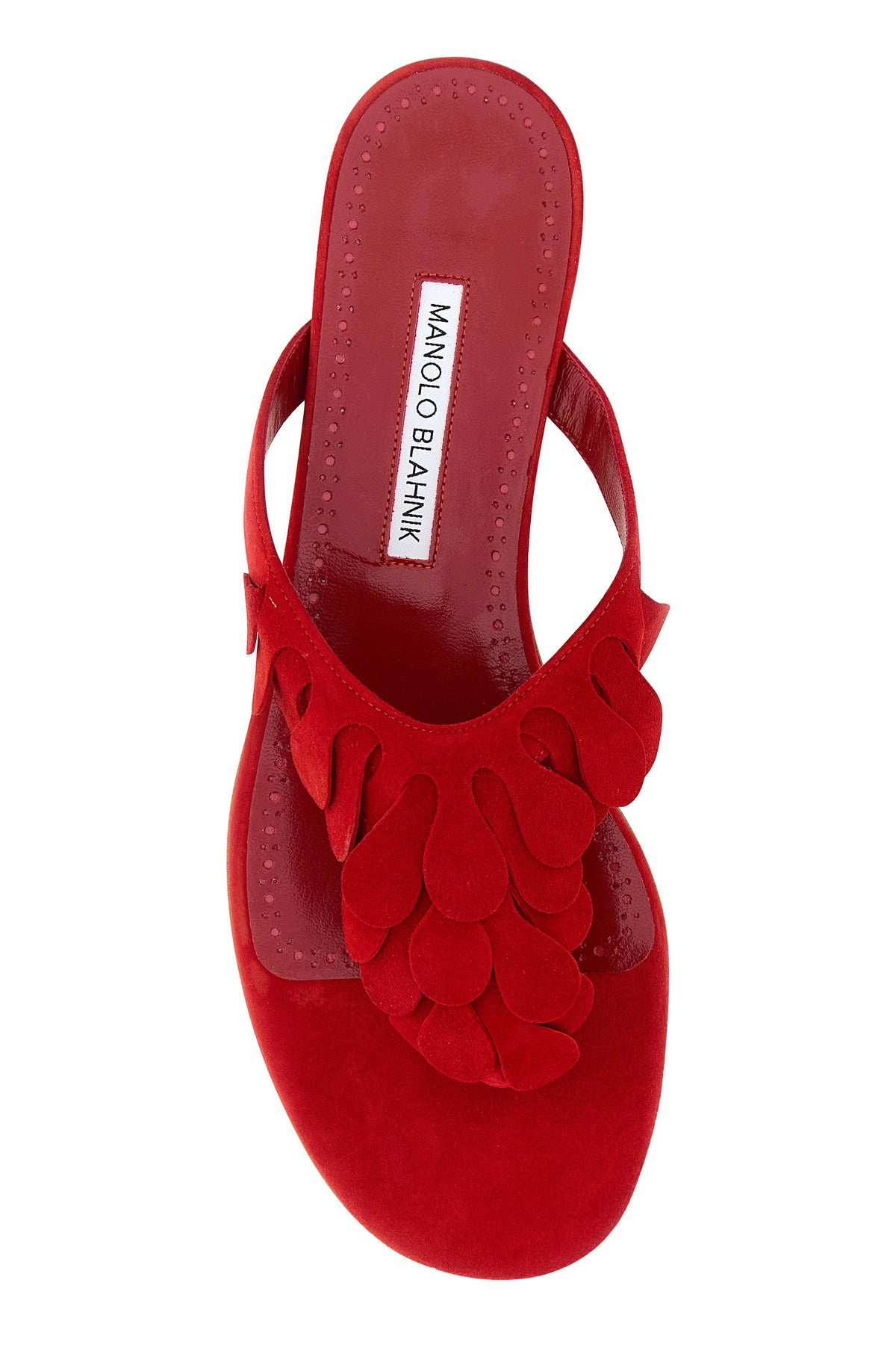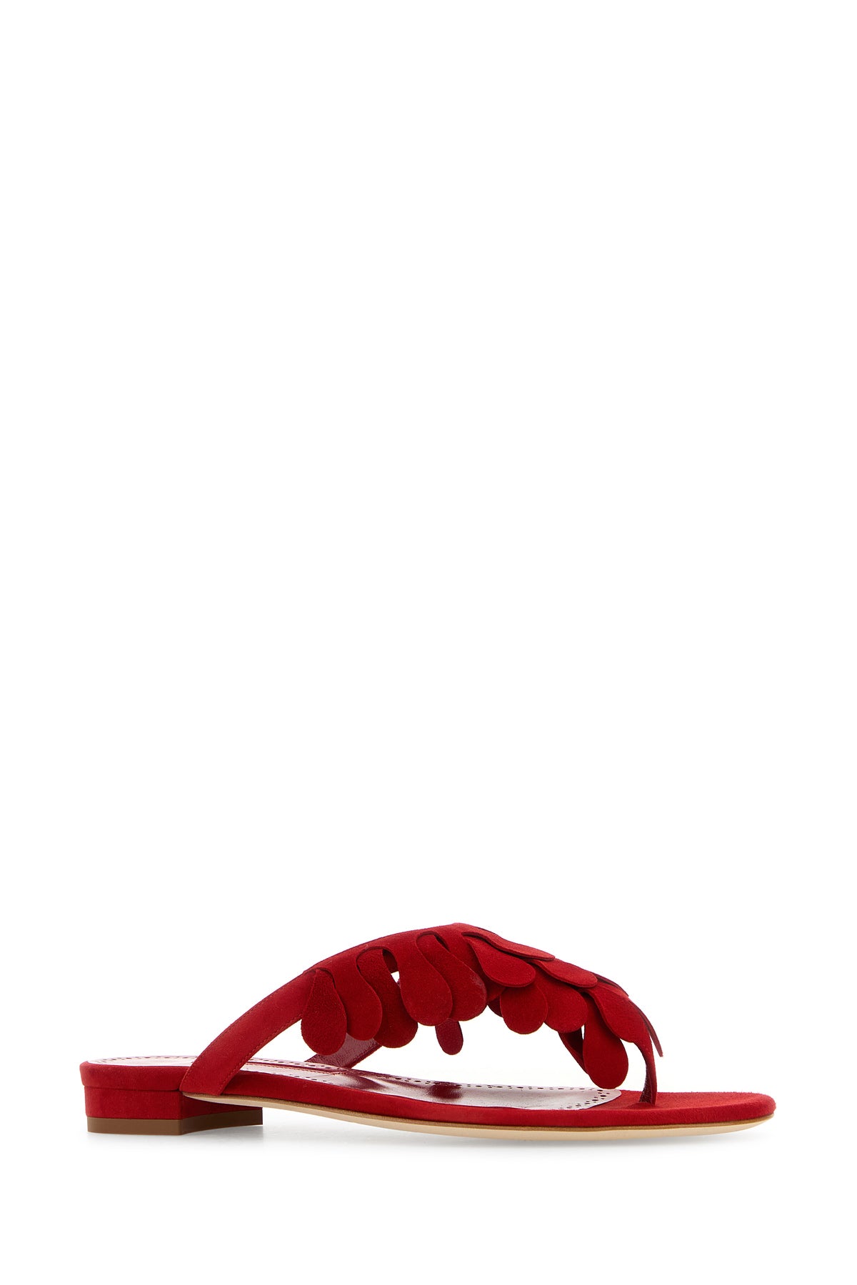 Thong slippers realized in suede enriched by tonal suede details on the entire surface.