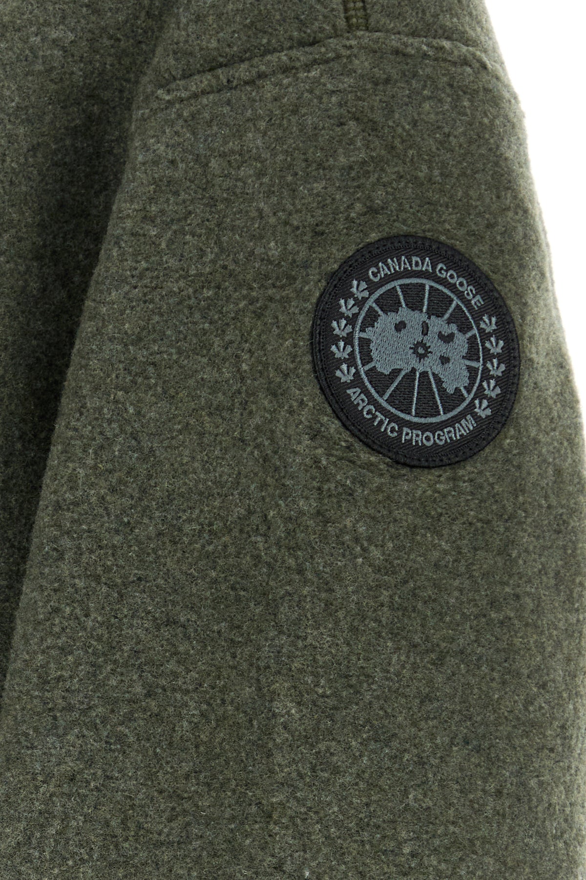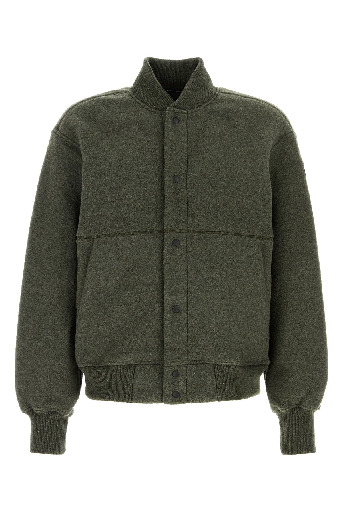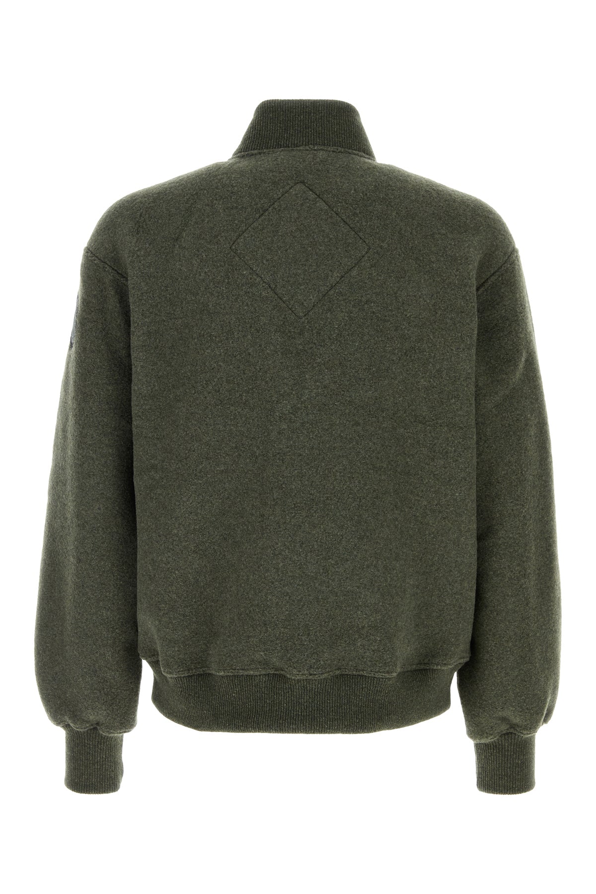 Bomber jacket realized in recycled wool enriched by contrasting logoed patch on the sleeve.