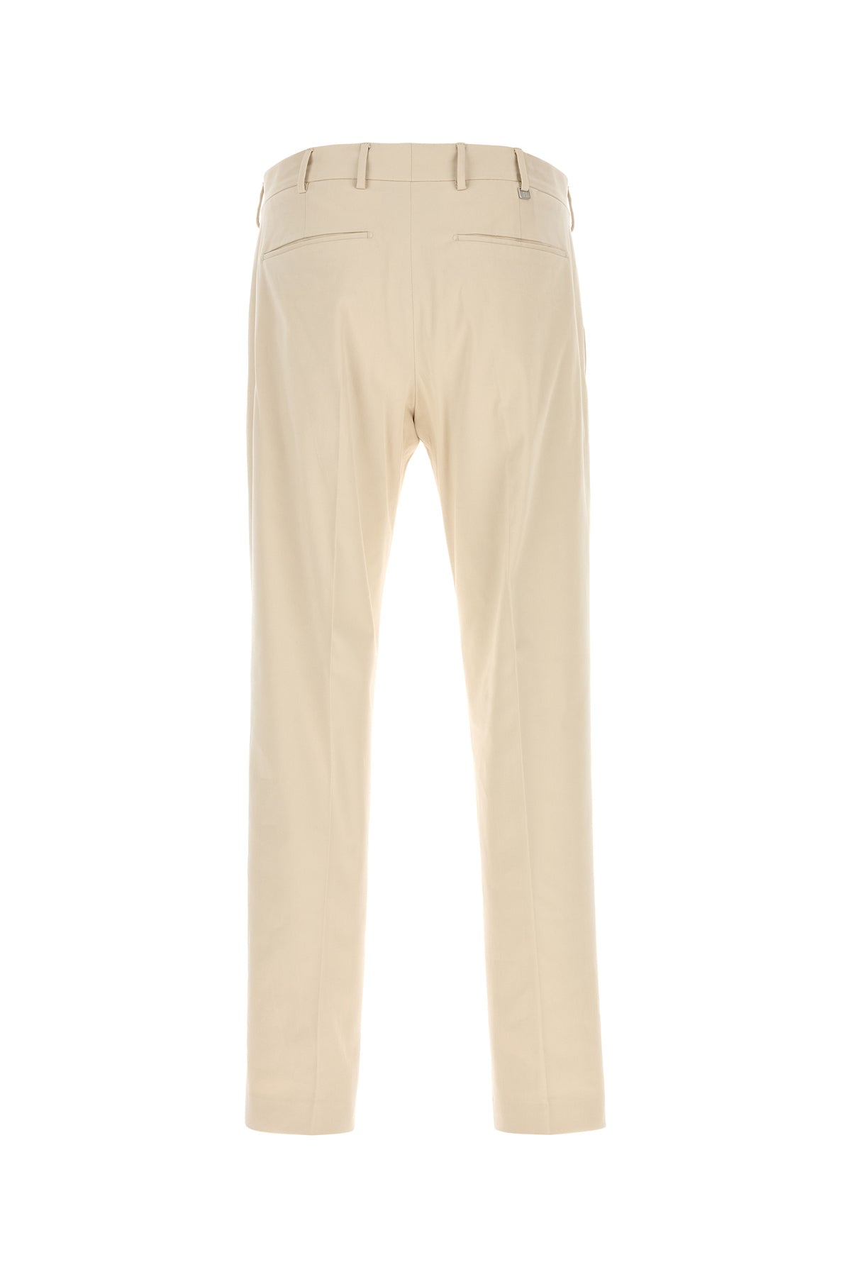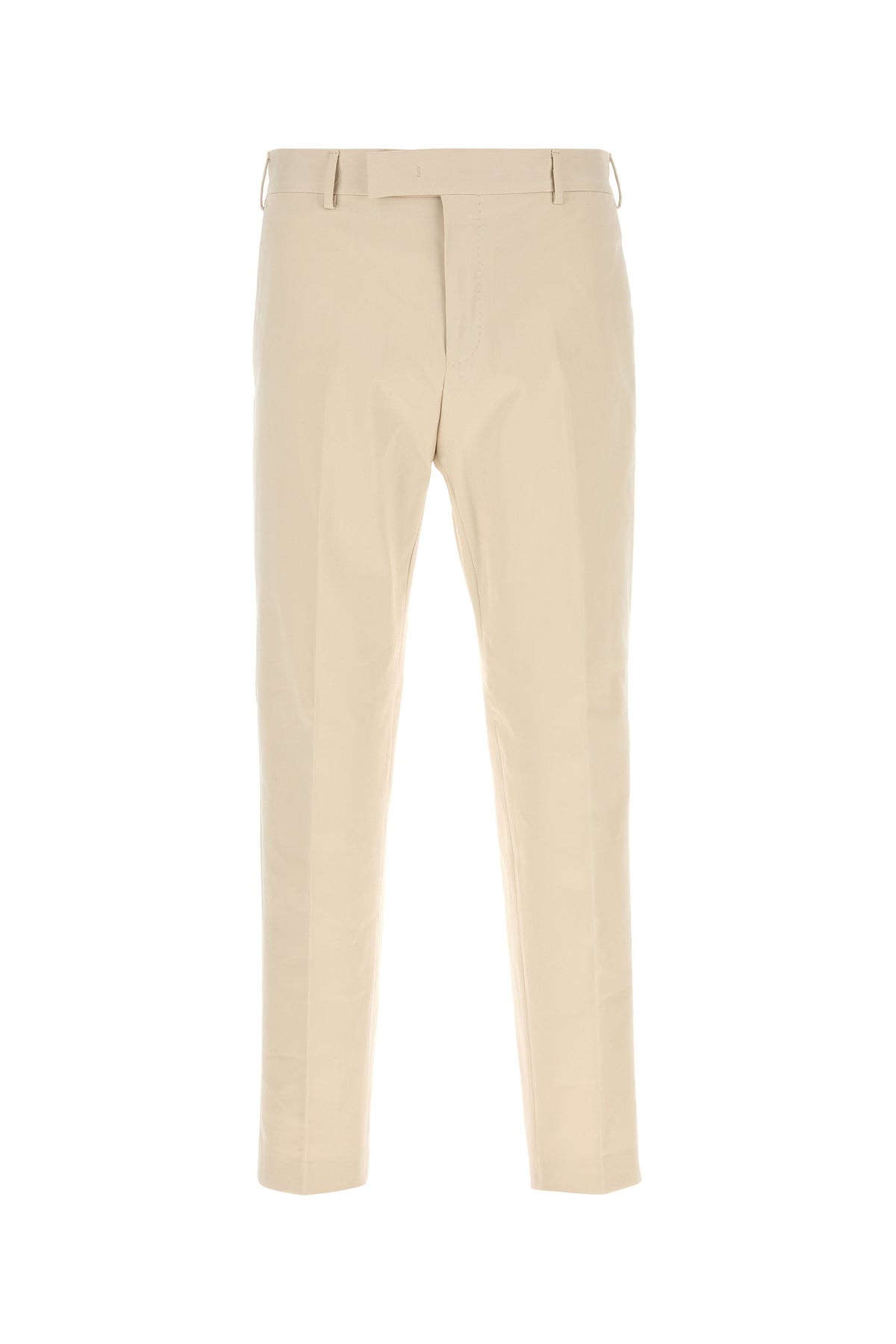 Pant realized in stretch cotton characterized by central ironed pleats.