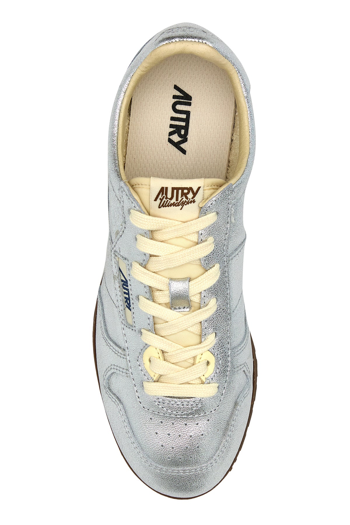 Sneakers realized in laminated leather characterized by embossed logo on the heel enriched by logoed label on the side.