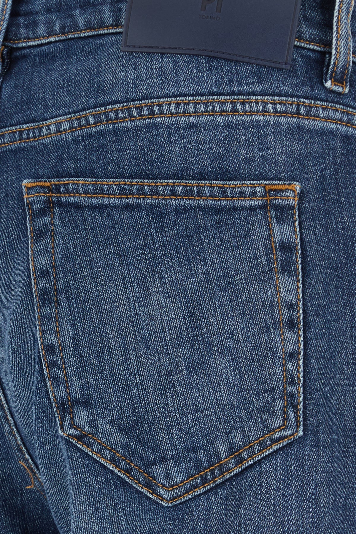 Jeans realized in stonewashed stretch cotton denim enriched by tonal logoed label at the back.