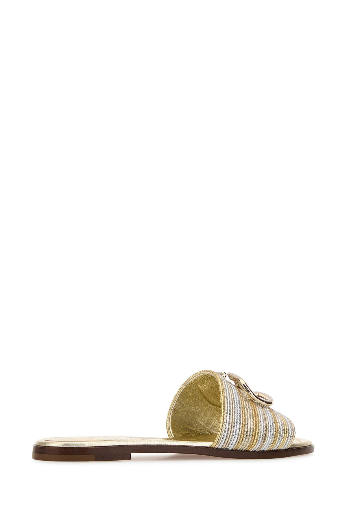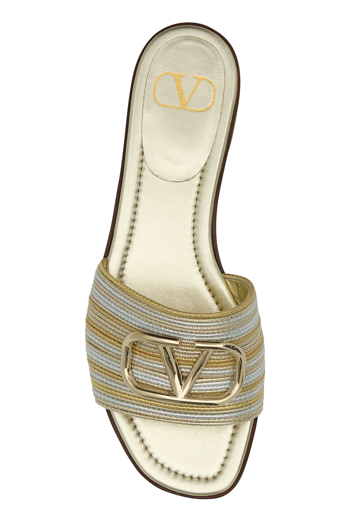Slippers realized in leather enriched by VLogo Signature metal detail on the instep.